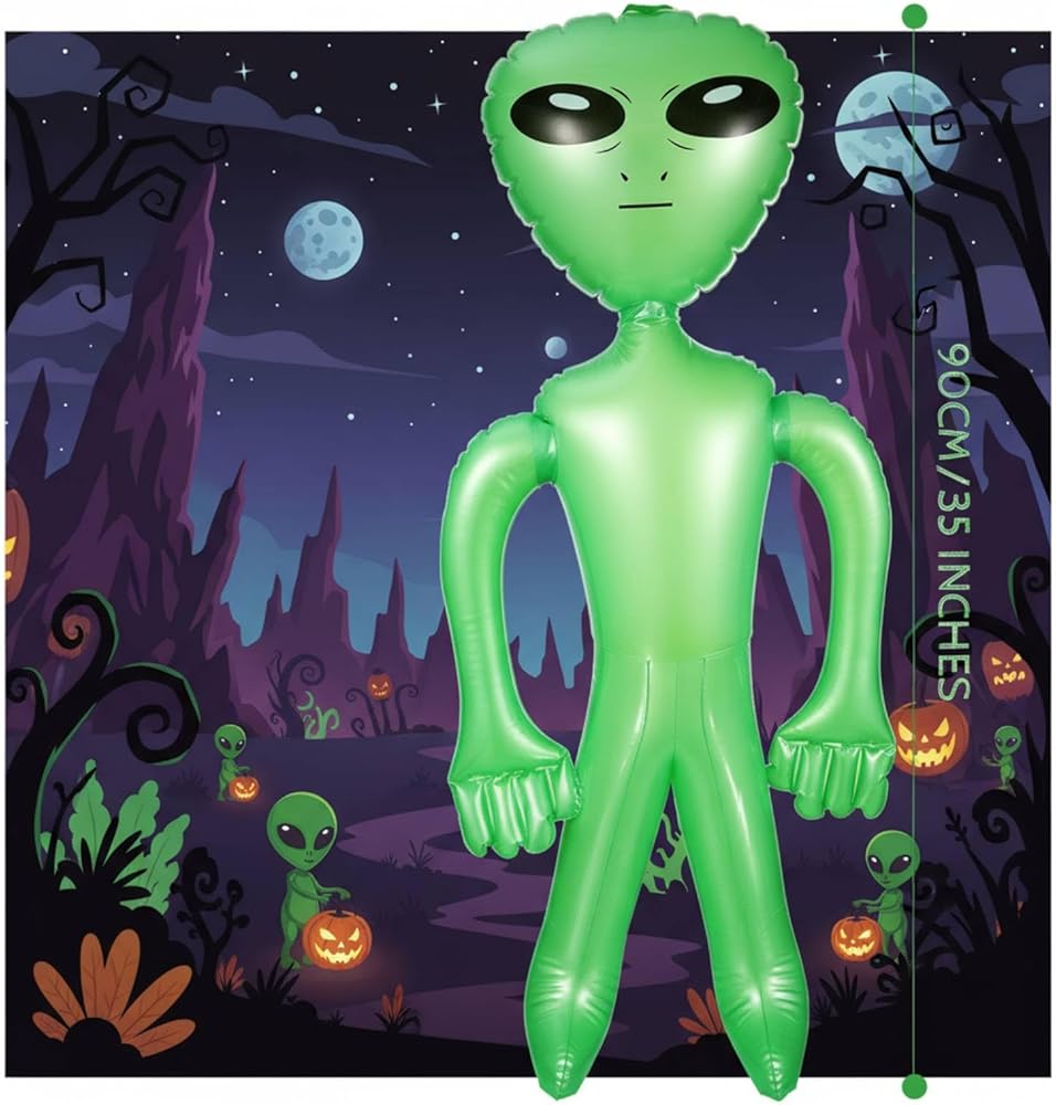Large size and design: Halloween inflatable alien is about 35 inches tall after inflated, which can decorate your party more eye-catching; The bright color and cute alien shape design will bring you impressive visual effects, giving you nice mood