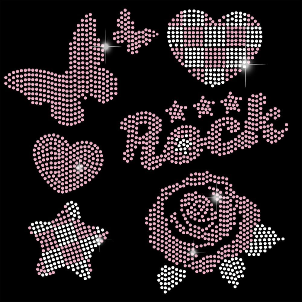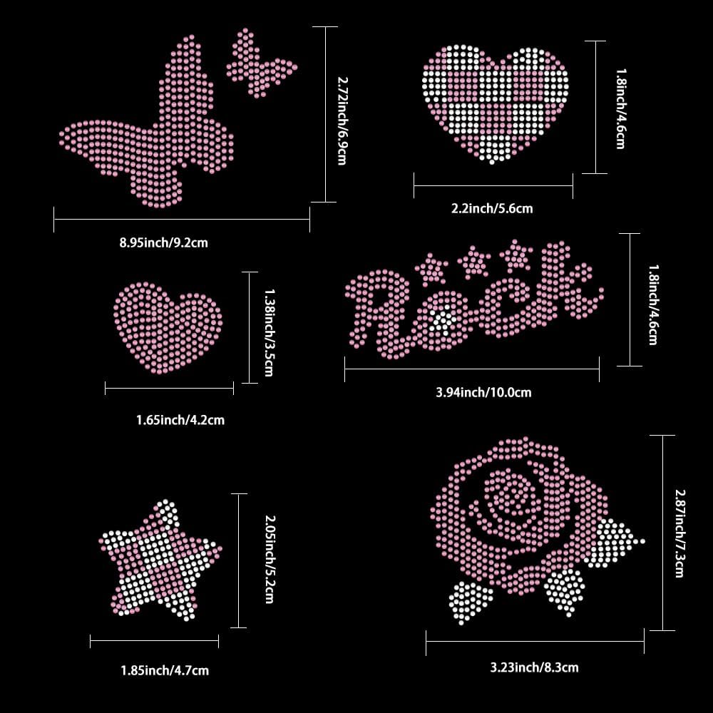 6 Pcs Butterfly Rose Patterns Rhinestone Iron on Hotfix Transfer Decal Bling DIY Patch Clothing Repair Patches Applique T-Shirt Vest Shoes Hat Jacket Jeans Decor Clothing DIY Accessories