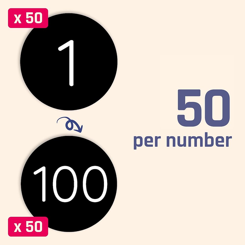 50 Sheets, 1-100 Number Stickers Labels Black - 0.4" Round, 5000 Pieces