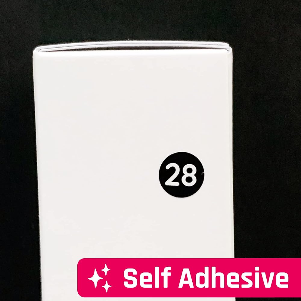 Self-adhesive labels. Sticks great on cards, boxes, packaging and almost any flat surface.