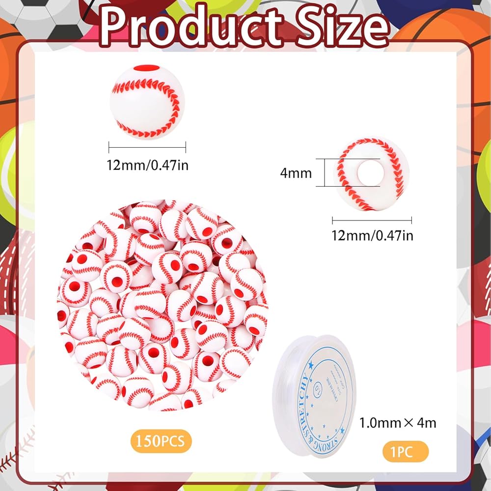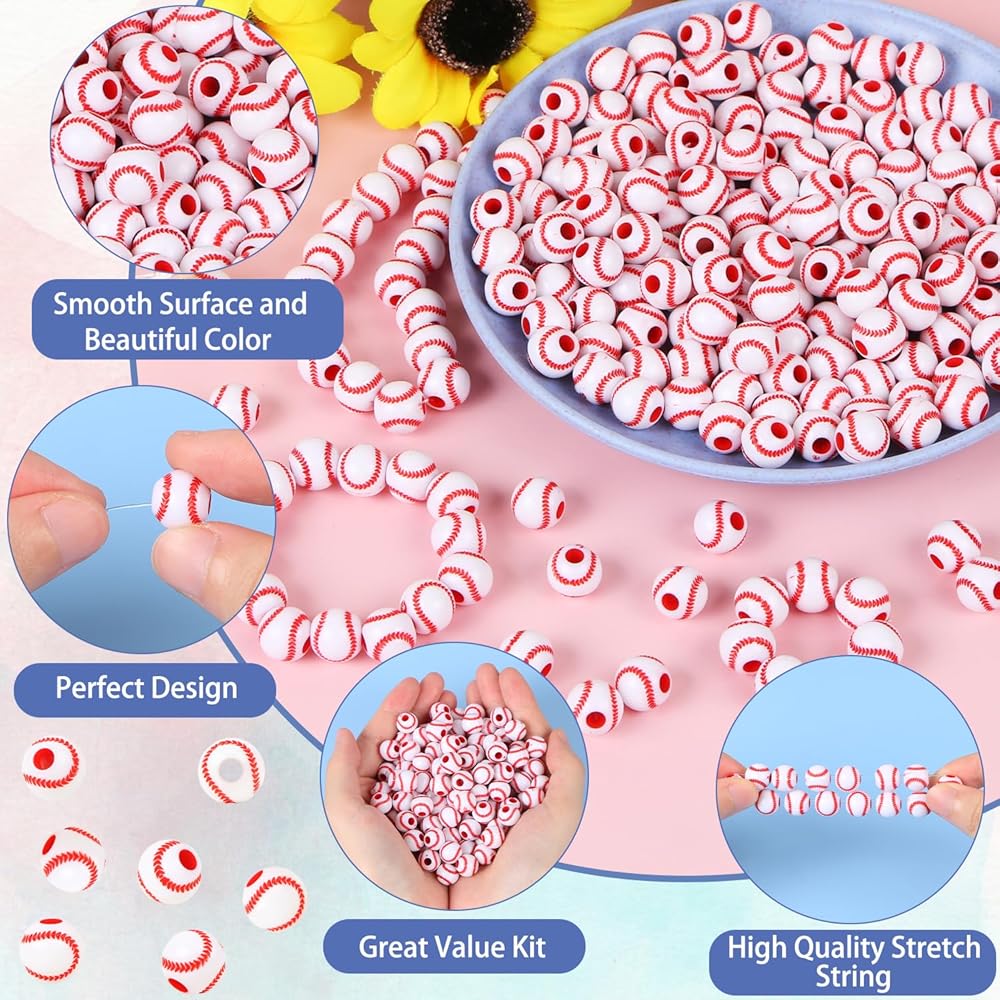Packaging: The acrylic sports beads jewelry making kit includes 150 pcs mini acrylic baseball Softball beads + 1 storage box + 1 pcs elastic rope. The accessories are complete and the quantity is sufficient.