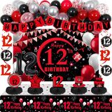 【Great Value Pack 16th Birthday Decorations for Boys and Girls】16th birthday decorations including 1 x red black HAPPY BIRTHDAY banner, 8 x 10 red latex balloons, 8 x 12 black HAPPY BIRTHDAY balloons, 4 x 12 white HAPPY BIRTHDAY balloons, 4 x 10 star foil balloons(2 red+2 black), 2 x crown foil balloons(red+black), 2 x 32 number "16" foil balloons, 6 x black hanging swirls, 6 x red hanging swirls, 6 x happy birthday pendants, 1 x tablecloth(70.86*42.51in), 2 x foil fringe curtains.