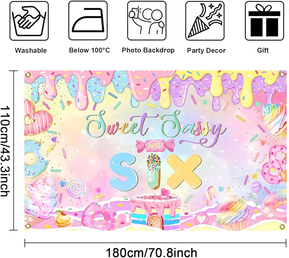 Apply to: These sweet sassy and six banner are great additions to girls birthday party, baby shower party, room decor, cake table banner, tapestry, curtain, celebration events, reception decor, photo booth backdrop and kids cake smash