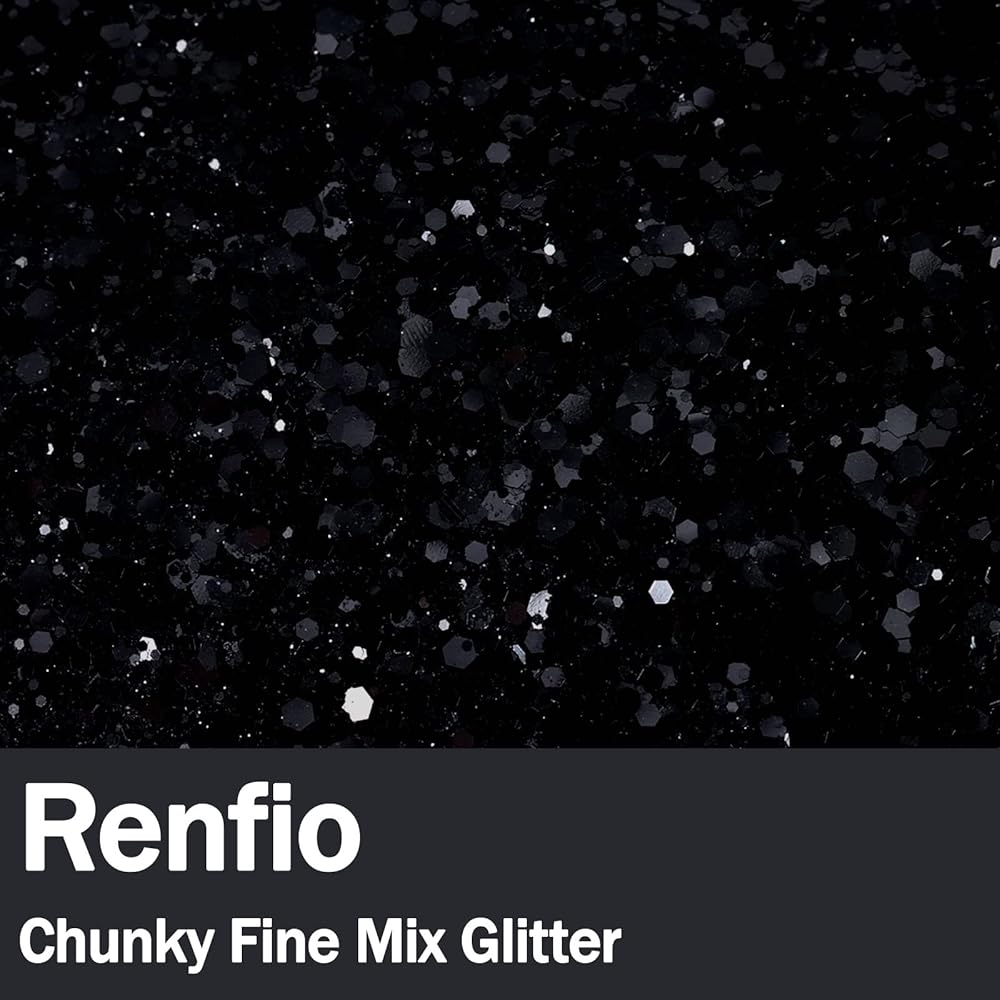 Renfio Black Chunky Glitter, 3.5 Oz (100g) Mixed Fine Powder PET Flake Iridescent Sequins Face Glitters for Halloween, Craft Resin, Tumbler Ornament Painting, Hair Body, Wedding Decor - Black