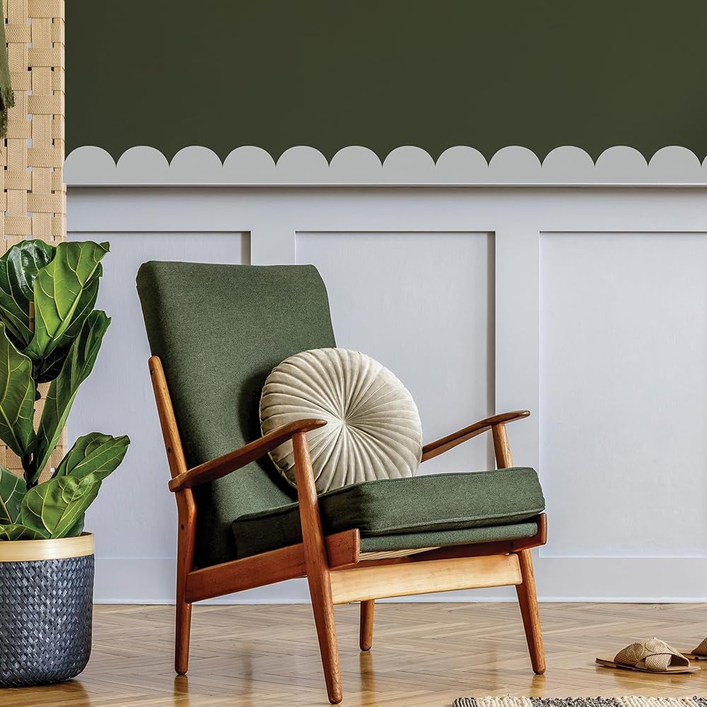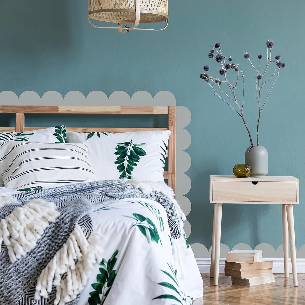 Designed to add a touch of charming personality to your space, these teal border decals feature a darling scalloped design that's perfect for creating a cozy and inviting atmosphere. Ideal for dorms or apartments, these renter-friendly decals are both removable and reusable, allowing you to personalize your space without damage. Add to walls, furniture, and more in just Peel, Stick…Done!® Teal Peel & Stick Scallop Border Decal contains 4 pieces on 1 sheet that measures 39-in x 17.25-in.