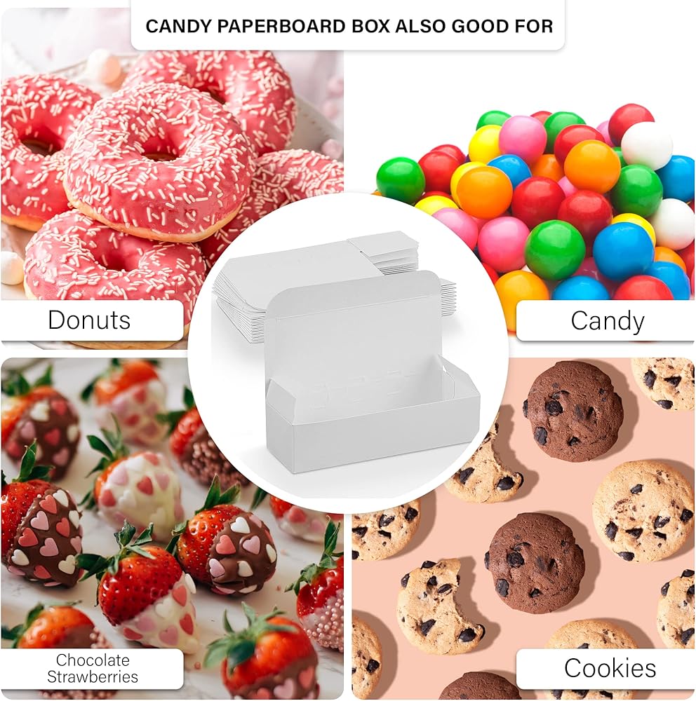 These pretty white treat boxes are perfect for sending a gift to a loved one. With a 5 x 2 1/4 x 1 1/4 size, they are great for storing truffles, nuts, candy, chocolate, mints, or smaller baked goods and to keep them away from getting dirty. The mini candy boxes are perfect to use as a gift to your loved ones with its design and perfect size it can store different kinds of treats.