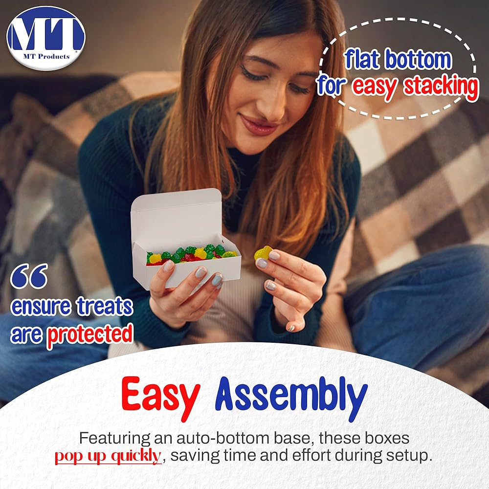 MT Products White Gift Boxes for Candy & Chocolates - 5" x 2 1/4" x 1 1/4" - Extra Small Auto-Bottom Fudge & Truffle Box (Pack of 20) - Made in USA - Ideal for Jewelry & Soap
