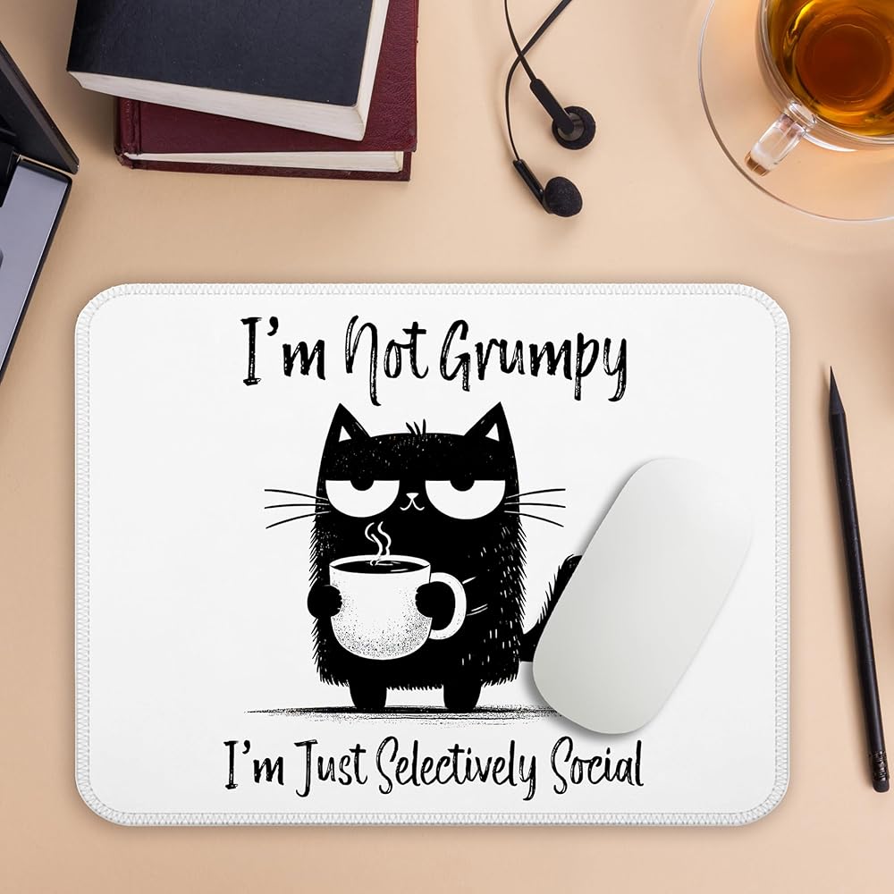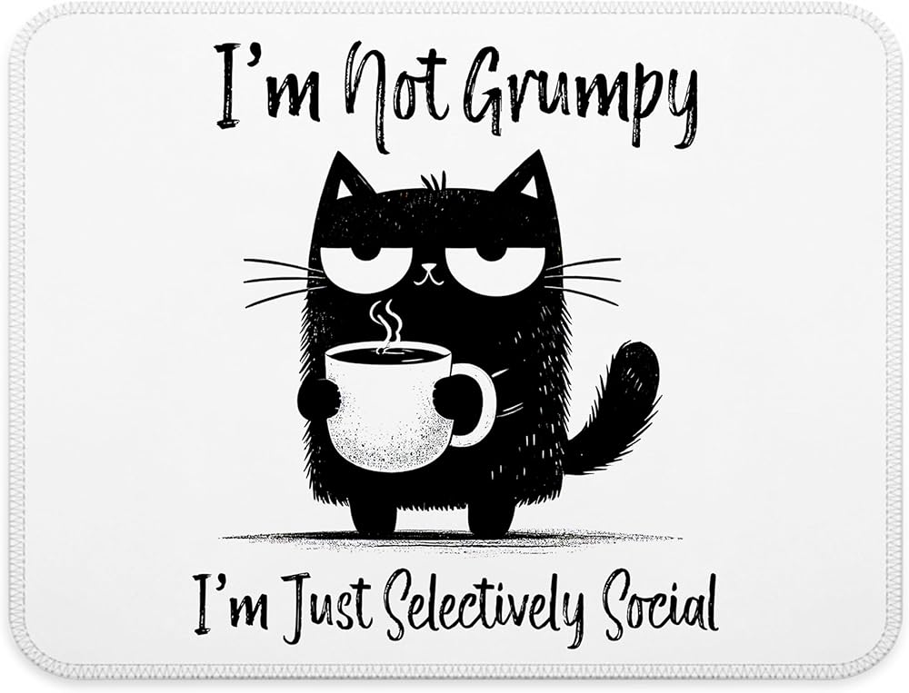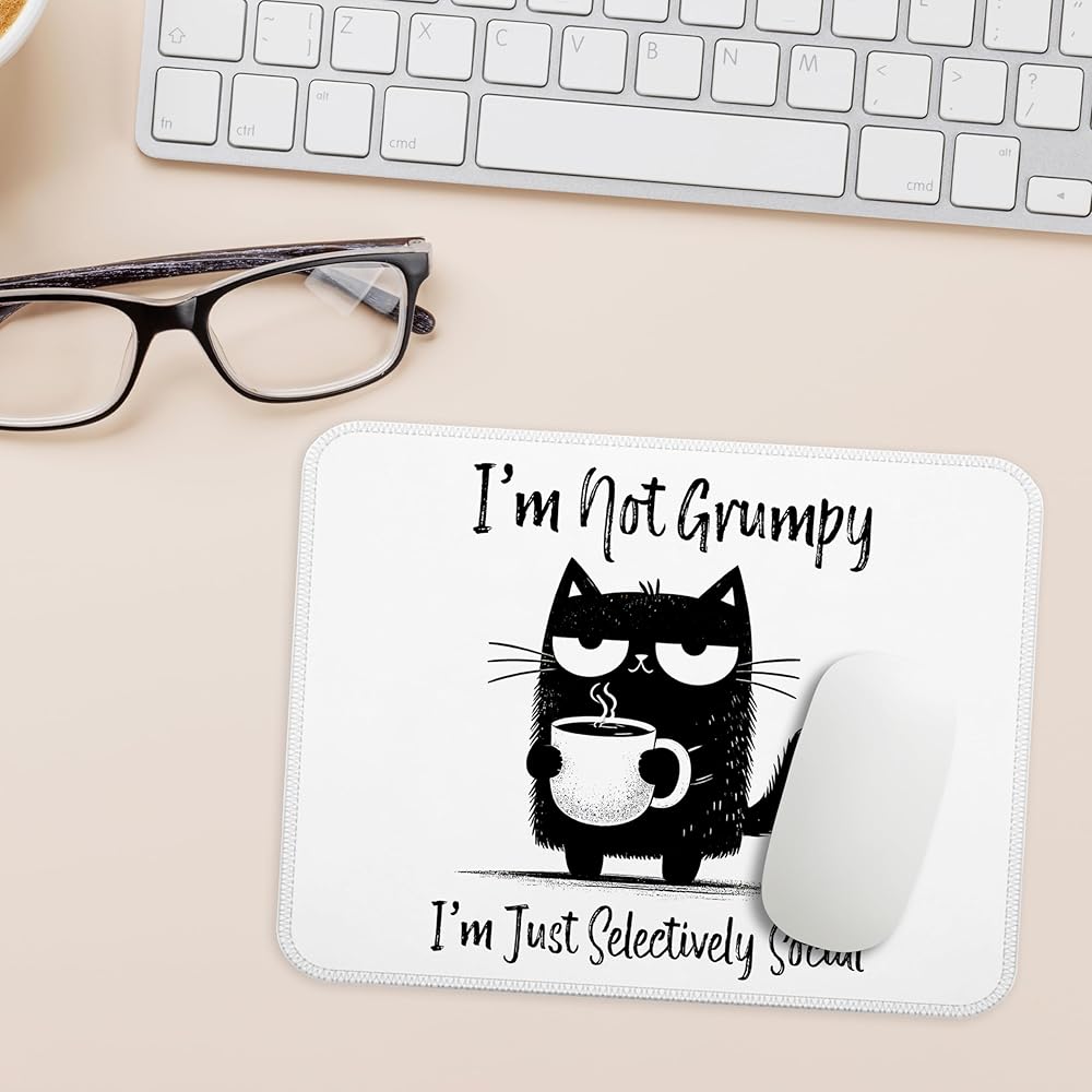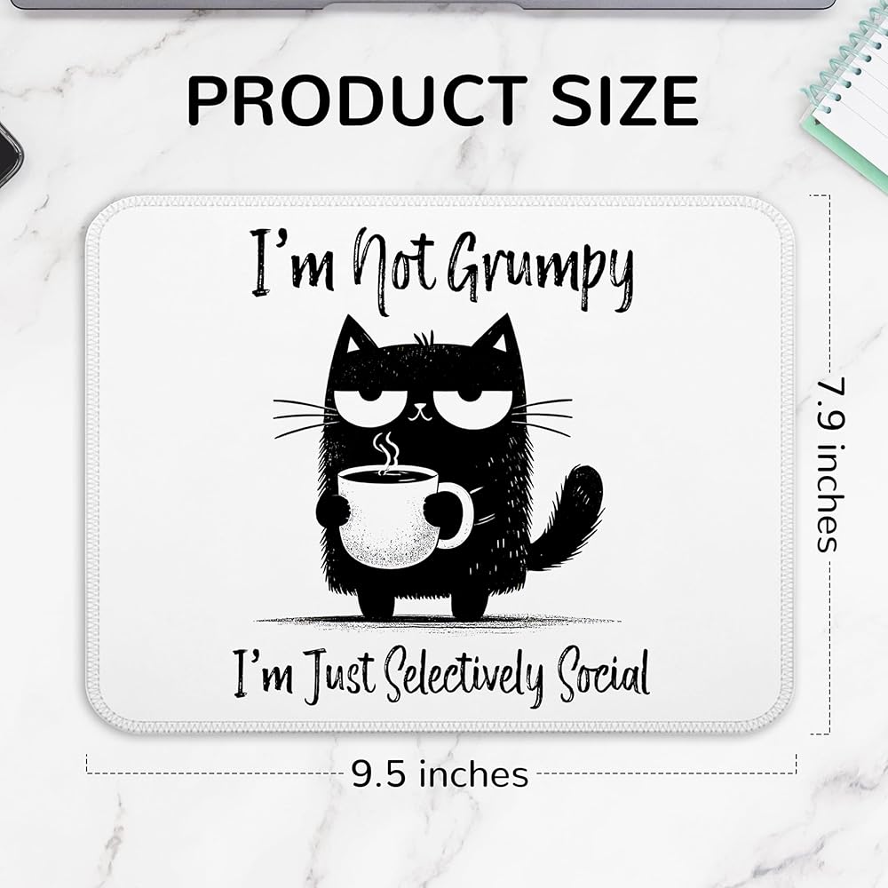 I'm Just Selectively Social Funny Cat Mouse Pad, Introvert Gifts, Black Cat Anti Social Mouse Pads for Work Wireless Mouse Computers Laptop Desk Accessories, Black Cat Gifts, 9.5x7.9 Inch