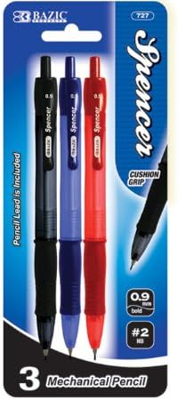 ⭐ SPENCER 0.9MM MECHANICAL PENCIL. Each pack includes 3 pencils with 0.9mm lead, cushion grip provides extra comfort. Useful product for drawing or writing. Comes in assorted color