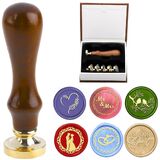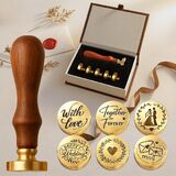 Sealing wax kit includes: 6 pcs eax seal stamp heads, 1 pc wooden handle. The seal wax set, wax stamp seal thank you packed in a stylish box. Sealing wax stamp head is made from gold-plated brass; the handle is made of wood. Each head of the wax sealing set is 1.18"/3cm in diameter, the whole length of the wax press stamp is 3.93"/10cm. By incorporating a envelope large wax seal stamp custom into your correspondence, you'll delight and enchant an addressee, sparking conversations and shared moments of wonder.