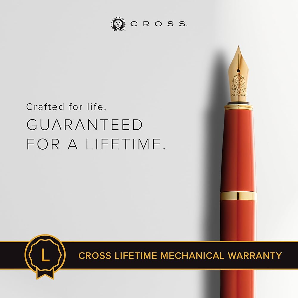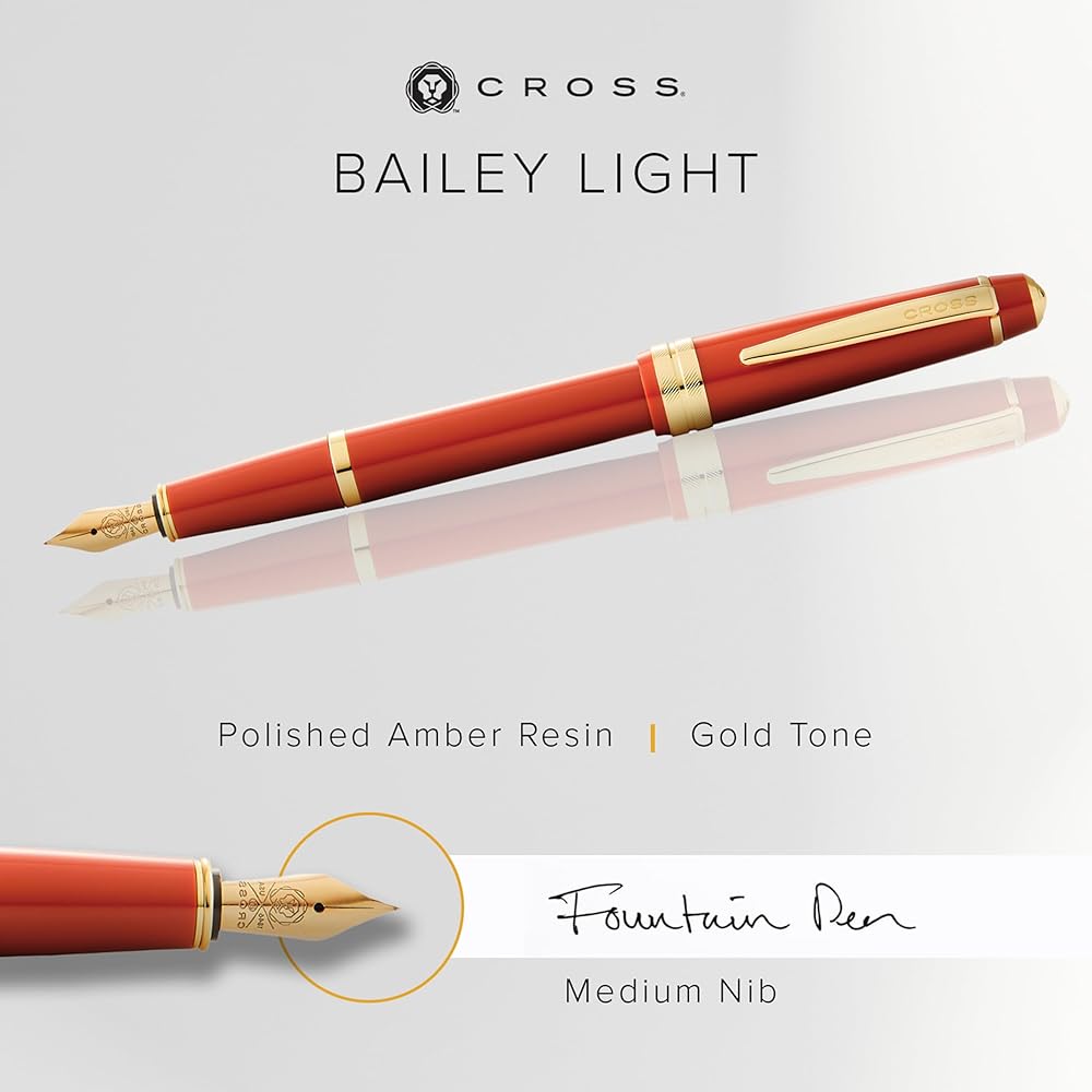 Cross Bailey Light Refillable Fountain Presented in a Everyday Gift Box - Medium Point, Black Ink, Polished Amber