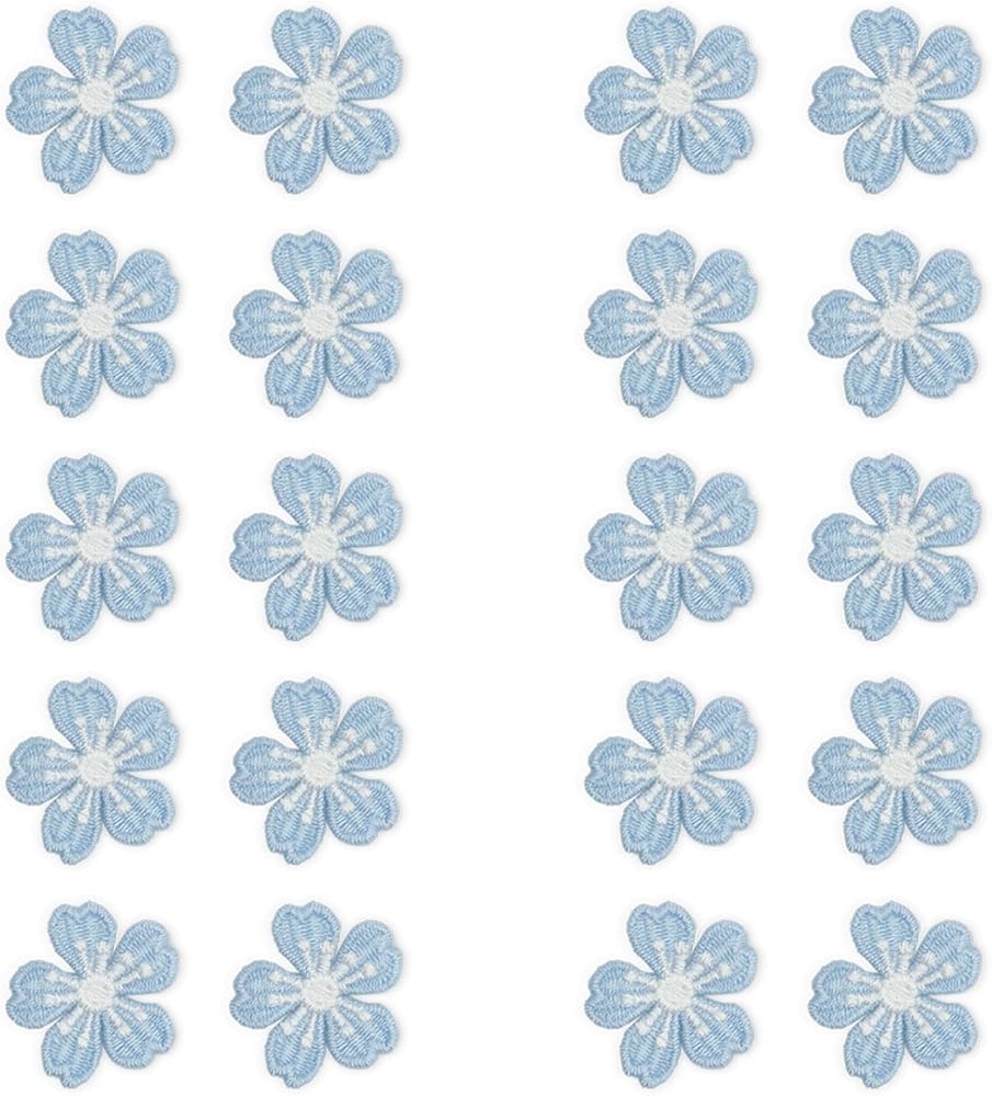 20 Pcs Small Applique Flowers Daisy Patches,Flower Applique Daisy Floral Sew on Embroidery Patch for Clothes, Flower Embroidery Patches for DIY,Hats,Bags,Jackets,Repair Decorations (Blue)