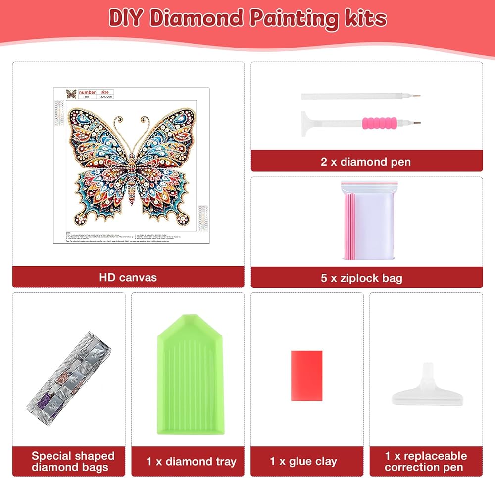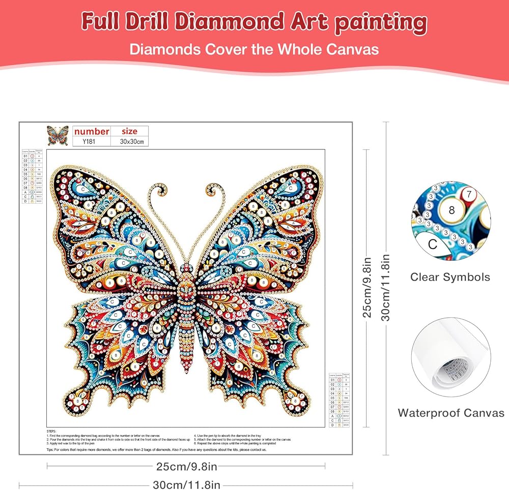 MEIYUDA 5D DIY Special Shape Diamond Art Kits for Beginners,Diamond Painting Kits for Adults Butterfly,Crystal Rhinestones Diamond Painting for Home and Office Wall Decoration 12×12Inch
