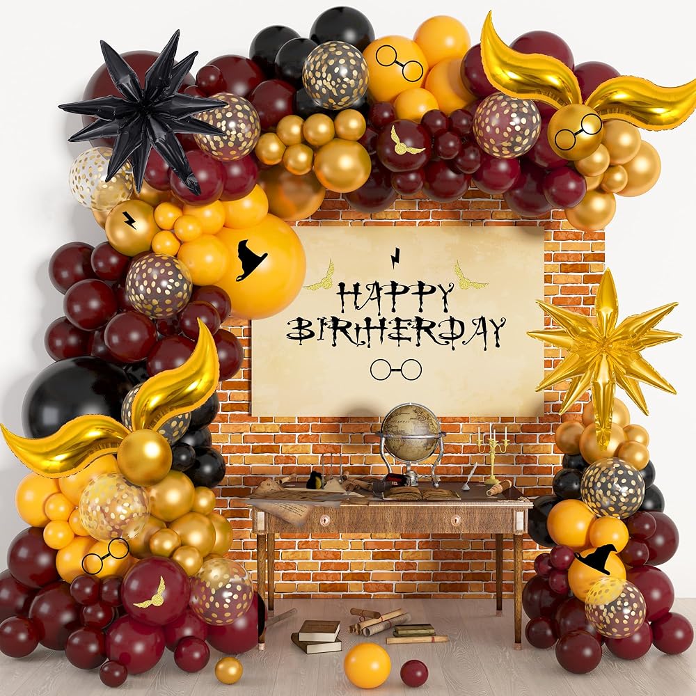 18in balloons: snitch balloons*4, black*1, burgundy*1, lemon yellow*1