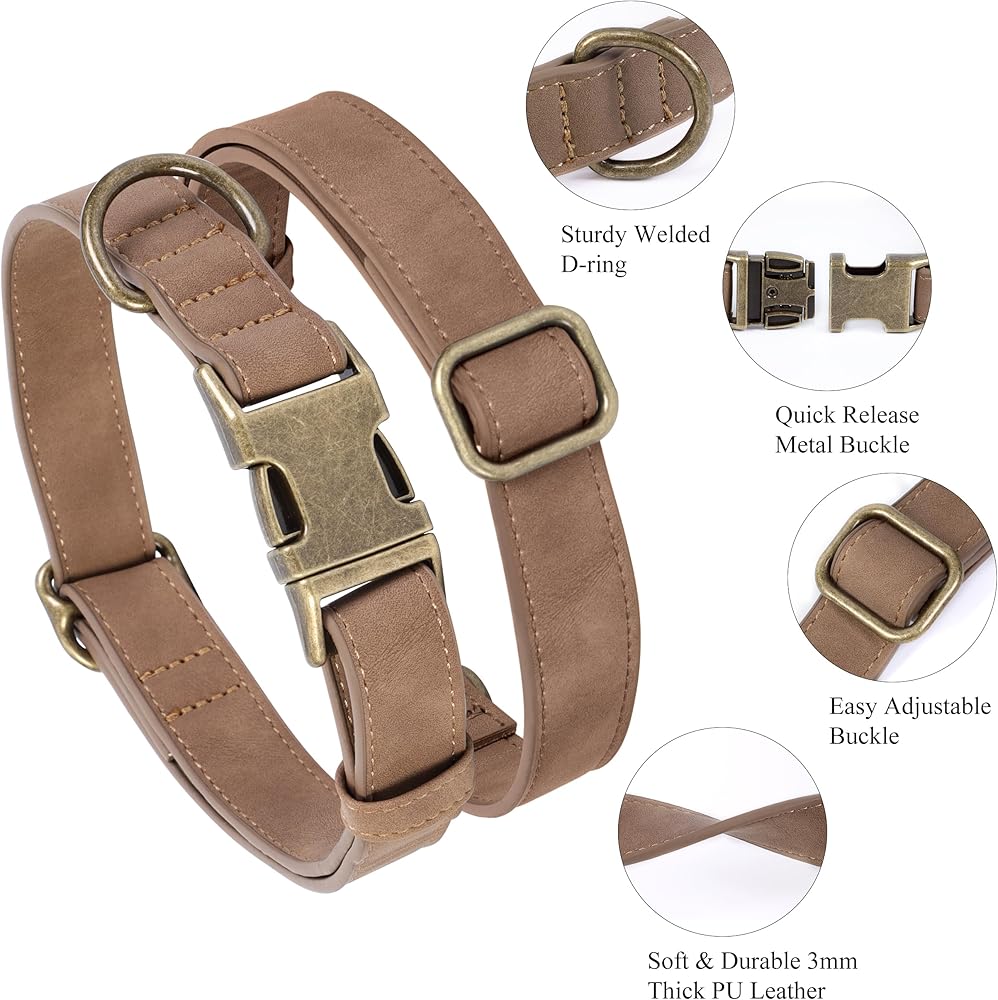 Convenient Quick Release Metal Buckle: Our leather collar with strong quick release metal buckle,made from premium zinc alloy. Which is easier and faster to put on and take off. And with a adjustment clasp, you can easily adjust the collar to a suitable and comfortable size