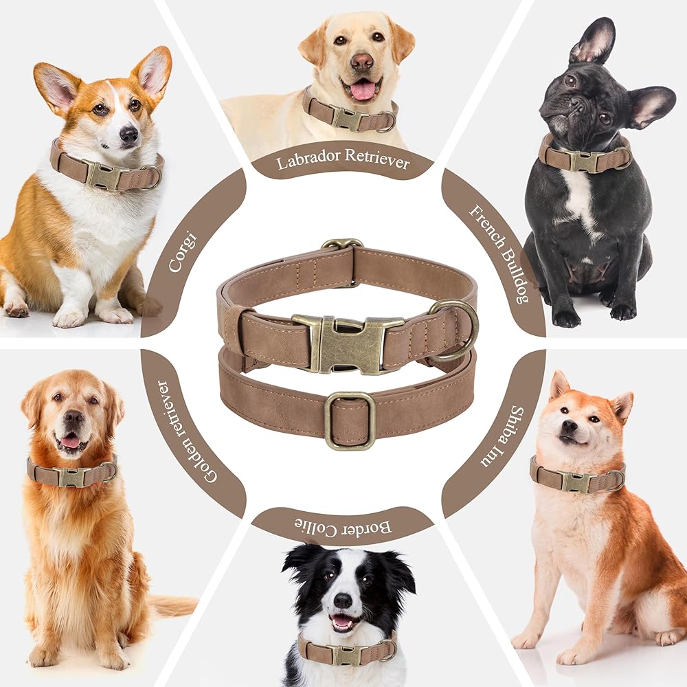 Durable & Comfortable Leather Dog Collar: Made of high quality PU leather that is very sturdy, specifically designed to withstand the wear and tear of daily use, offering both style and function. Which will make your dogs feel comfortable and cozy even wearing all day, and won't hurt them