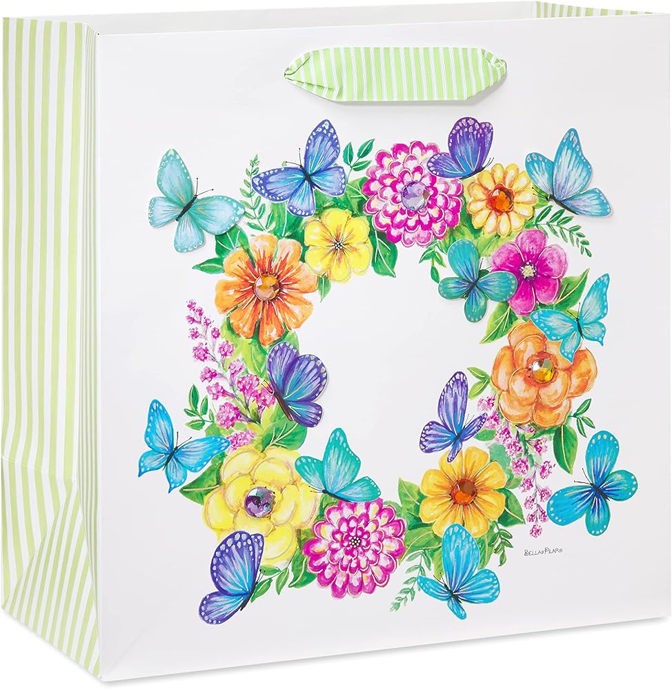 Papyrus 11.4" Large Gift Bag - Designed by Bella Pilar (Butterflies and Floral Wreath) for Birthdays, Weddings, Bridal Showers, Baby Showers and All Occasions (1 Bag)