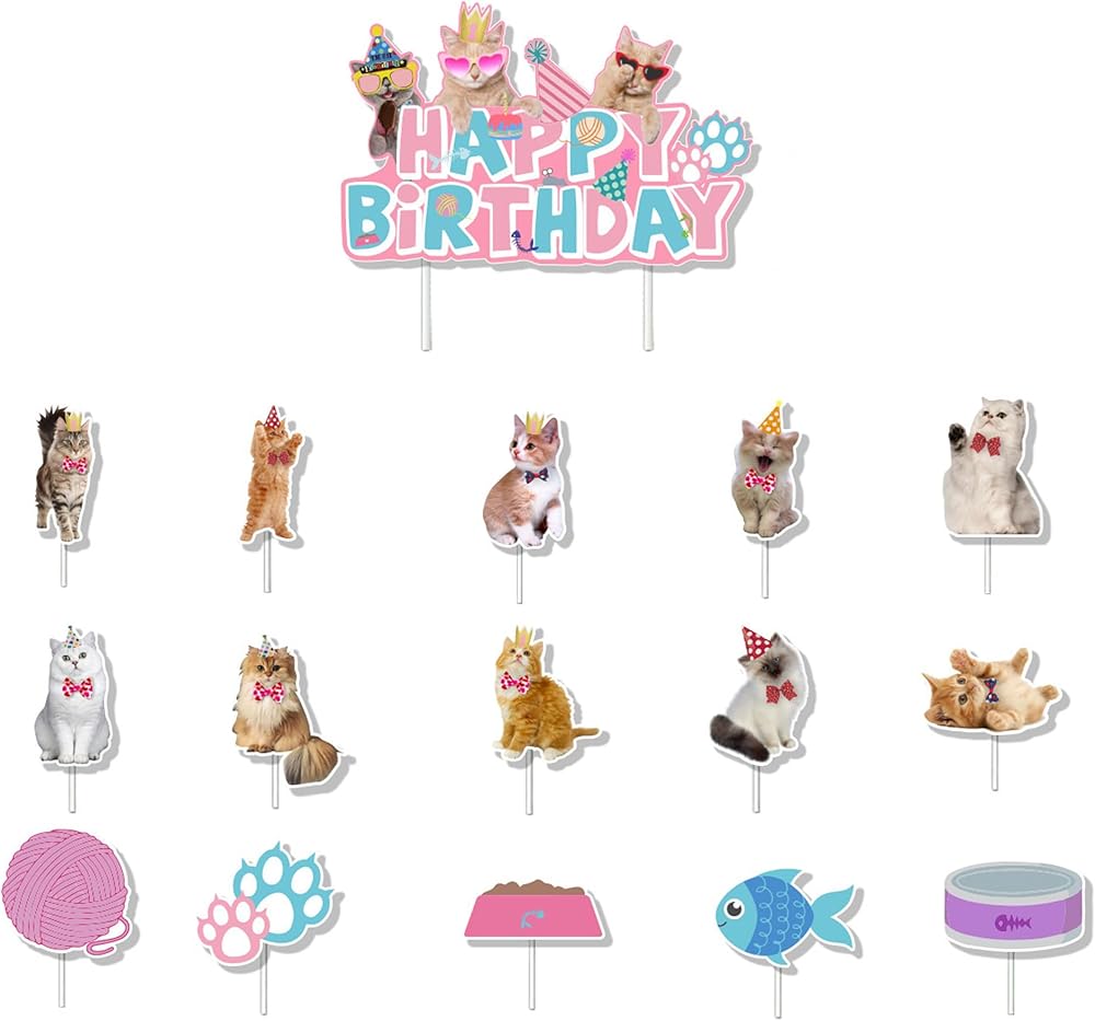 PACKAGE INCLUDES - The package have 15 different cat patterns, and 1 “HAPPY BIRTHDAY” letters, totally 16 cat cake toppers.