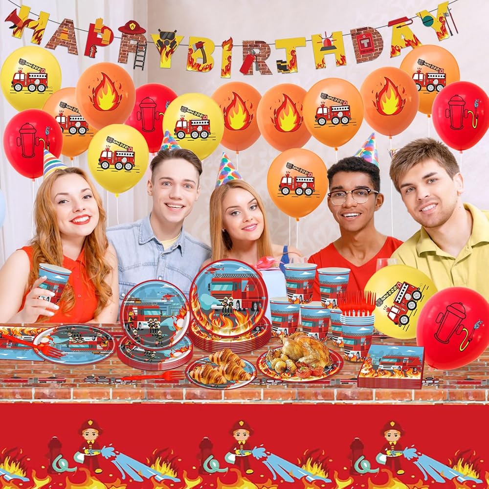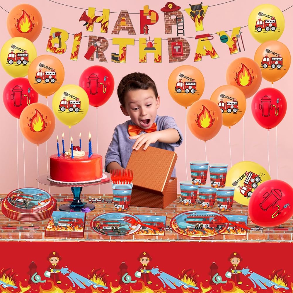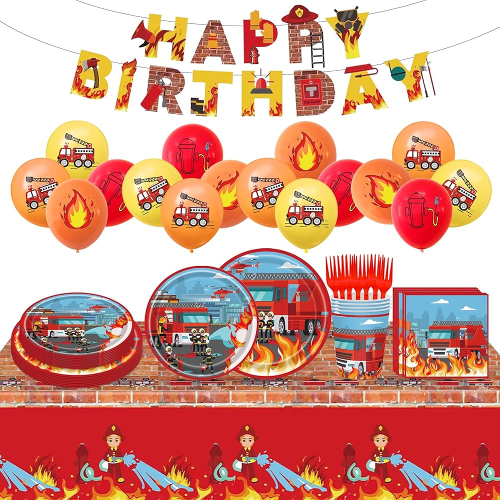 Widely Applications: Fire truck theme party decorations can widely used in firefighter party supplies, fireman birthday party decorations, firetruck birthday decorations, boys birthday party decorations, catering, picnics, barbecues, buffets, family gatherings, holidays and various other events or as firefighter party favors for friends. Every friend and family will be interested in this firetruck party decorations.
