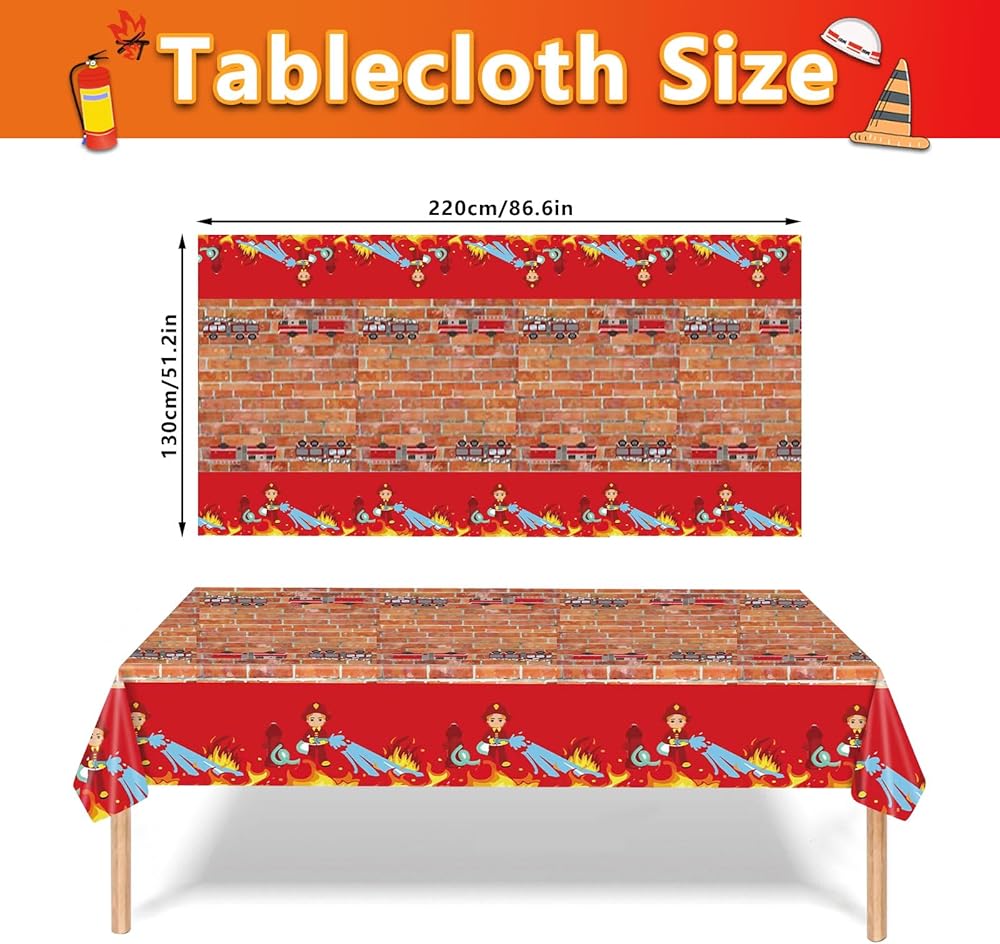 High Quality Materials: The fireman truck theme plates and napkins tableware set are made of safe and reliable food grade material, non-toxic and odorless. The thickened material can hold more food, is fade resistant and leak proof. The tough napkins are made from virgin wood pulp and are easily degradable. Our firefighter table cover are made of excellent durable PET material. You can confidently use firefighter party decorations on the kids and girls boys birthday party decoration.