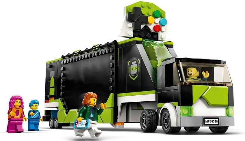 The LEGO City Video Game Tournament Truck (60388) toy for kids aged 7 and up has arrived in LEGO City for the big match between eSports champions and is loaded with features for imaginative play. This toy truck is loaded with awesome equipment and merchandise for enthusiastic video game fans. Kids fold the side of the huge trailer to reveal a scene with 2 toy video game stations and a stadium screen with fun animation feature, plus a winner trophy and cool merchandise for LEGO City esports fans. Simply add the presenter and LEGO City minifigures to play and let the tournament begin! This game for 7+ includes an illustrated building guide and the LEGO Builder app – an amazing digital guide with zoom and rotate tools that let kids visualize the finished LEGO vehicle model from all angles as they build. We grow up surrounded by amazing vehicles and machines, and with LEGO City Fabulous Vehicles building toys, kids can explore them up close, with realistic mockups and inspiring characters for creative role plays. This toy for kids ages 7 and up is a great birthday gift idea for video game fans. The LEGO City truck measures over 13cm high, 33cm long and 6cm wide Contains 344 pieces