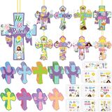 What You Will Get: This set includes 36 Easter craft kits, featuring 36 cross cards, 36 pattern stickers, one roll of ribbon, and transparent dot glues. These supplies are suitable for meeting the needs of your art projects or creative activities.