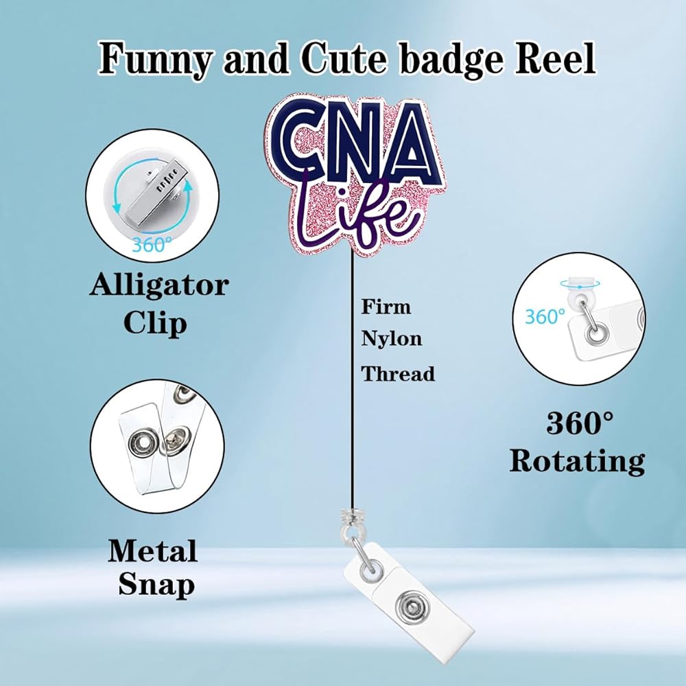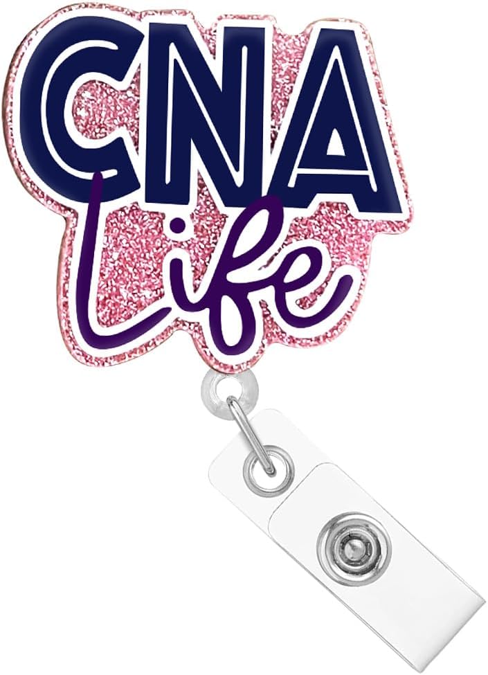 Pink CNA Life Badge Reel Retractable Clip Nurse Nursing Badge Reels Holder for Nurses Medical RN Glitter Acrylic Badge Clips Doctor Student Hospital Office Name Tag Card Accessories