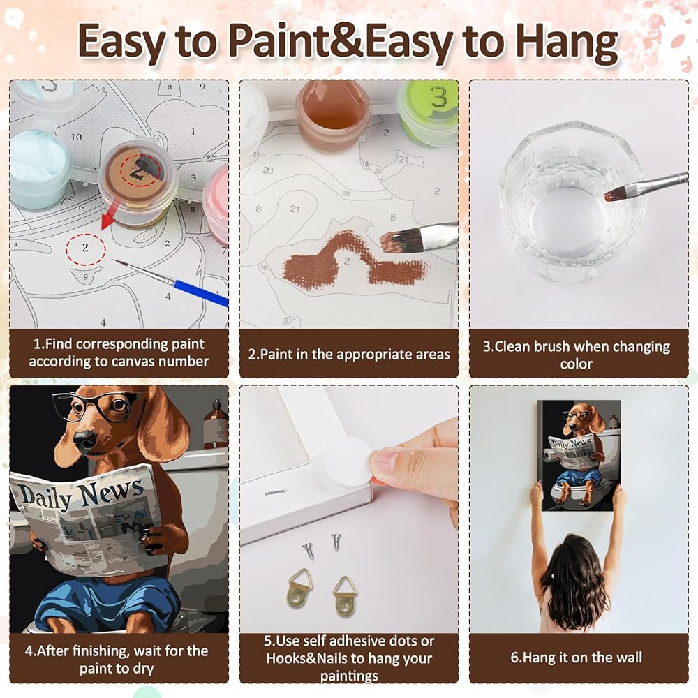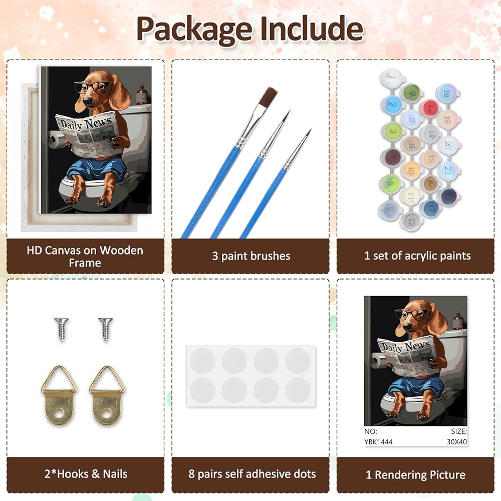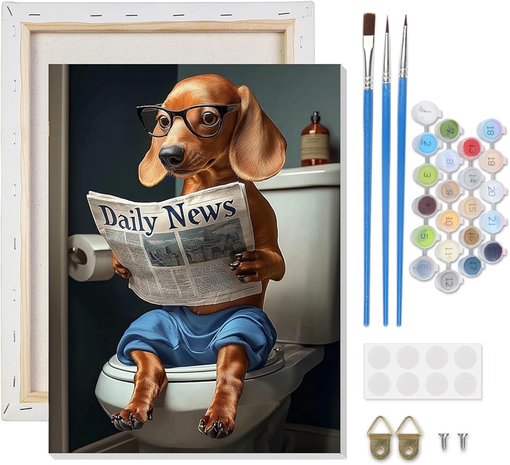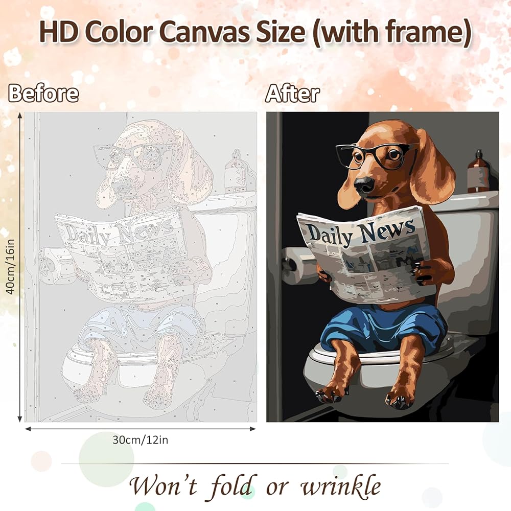 CEOVR Framed Dog Paint by Numbers Kit for Adults, Dog Reading Newspaper on Toilet Paint by Number on Canvas for Beginner, Adult Crafts Kits Wall Decor for Home Office,12x16In/30×40cm
