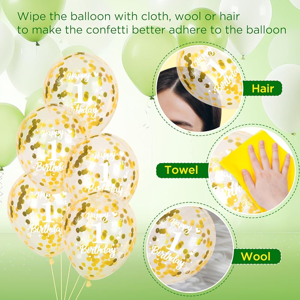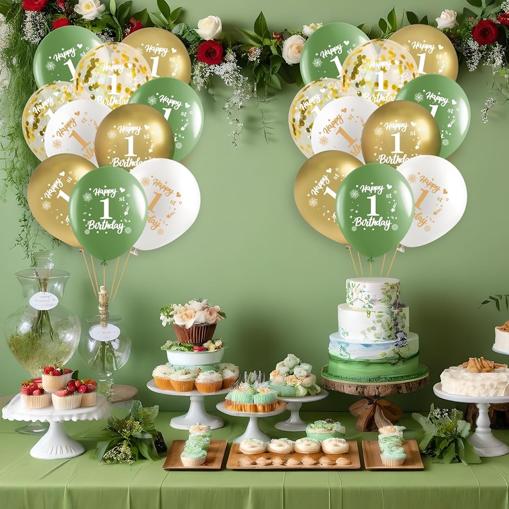 【18th Happy Birthday Party Decorations】: You will get 6 x 12inch Avocado green, 6 x 12inch metal gold, 6 x 12inch featured gold confetti and 6 x 12inch White latex balloons as 18th birthday party decorations, everyone will praise after seeing them, sage green balloons are essential decorations for birthday party which can be used as a photo background for everyone to record the loving moment