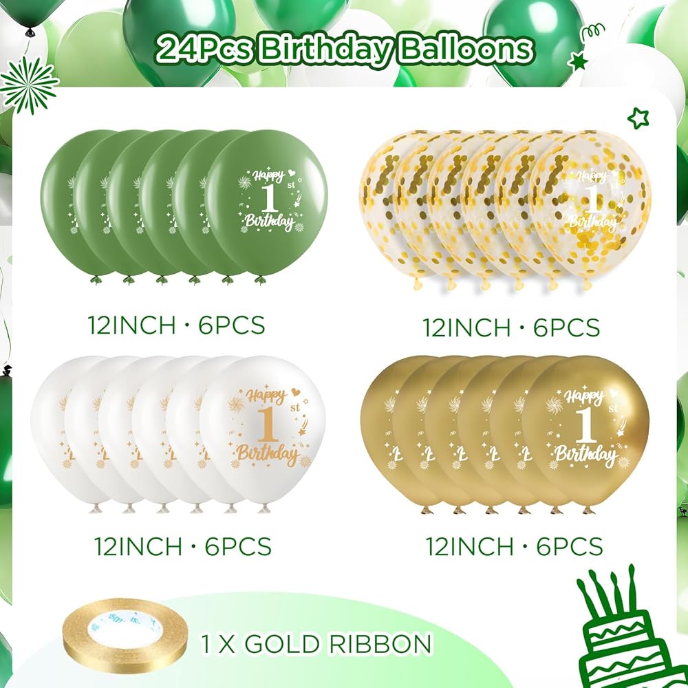 【Wide Application】: The sage green happy birthday balloons for women can be used indoors or outdoors, you can use the gold ribbon in the package to tie the green gold balloons anywhere you want to decorate, such as on shelves, fences, trees or garage doors to make your 18th birthday party more attractive