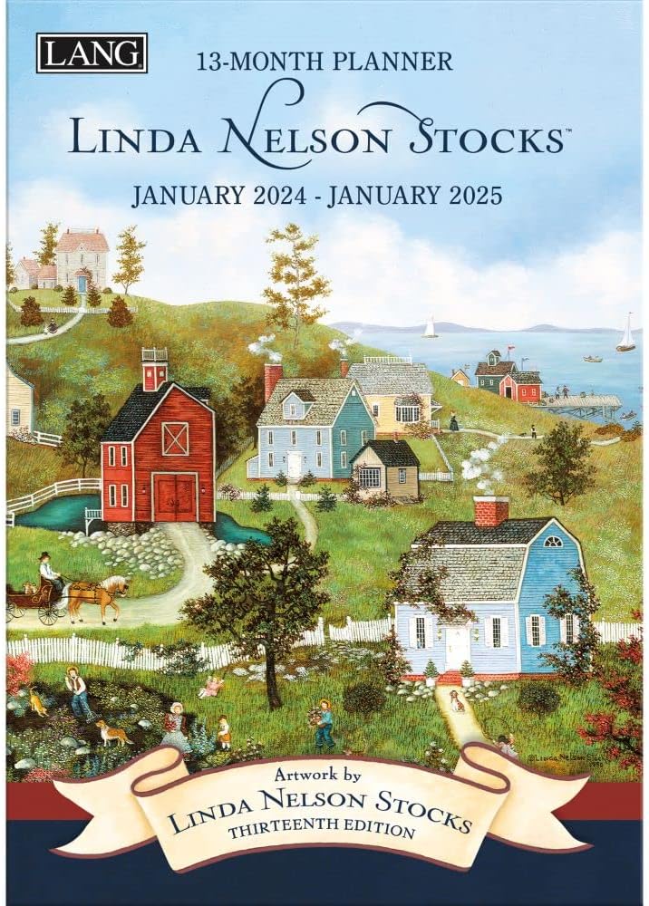 The Linda Nelson Stocks 2025 Monthly Planner features a collection of her portrayals of rural towns and villages in a 13-month calendar format with ample room for notes and engagements. LANG Monthly Planners also feature a 2025 Planning Guide and linen embossed paper cover and pocket sleeve.