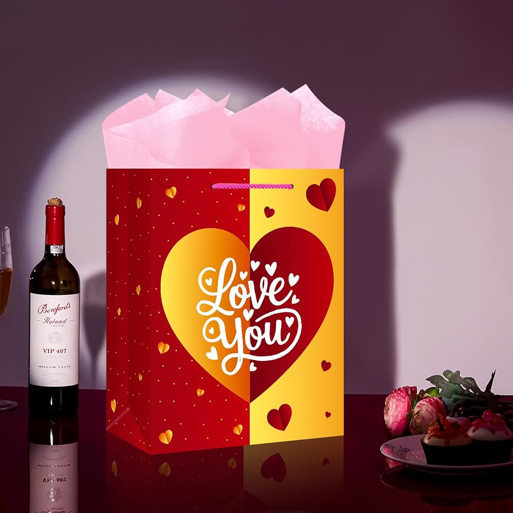 Valentines Day Giftbags: These Valentine gift bags with tissue paper are very suitable for Valentine's Day gift bag, Anniversary gift bag, holiday bag, party favor bag, Valentine's night decoration