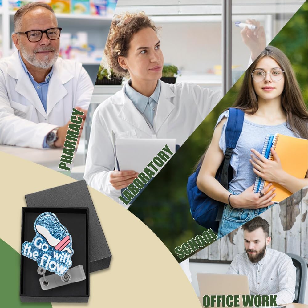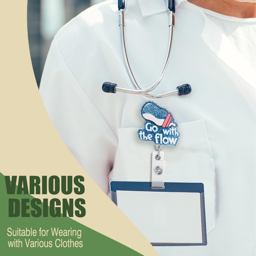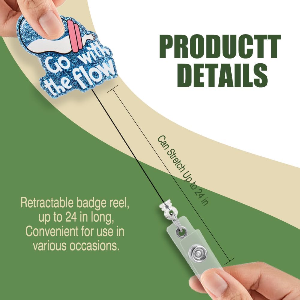 Go with The Flow Retractable Glitter Badge Reel with Clip, Funny Baby Bottle Badge Reel for NICU Labor Nurse Neonatal Nurse Doctor, Nurse Day Gift for Obstetric Pediatric, 2.2*2.7