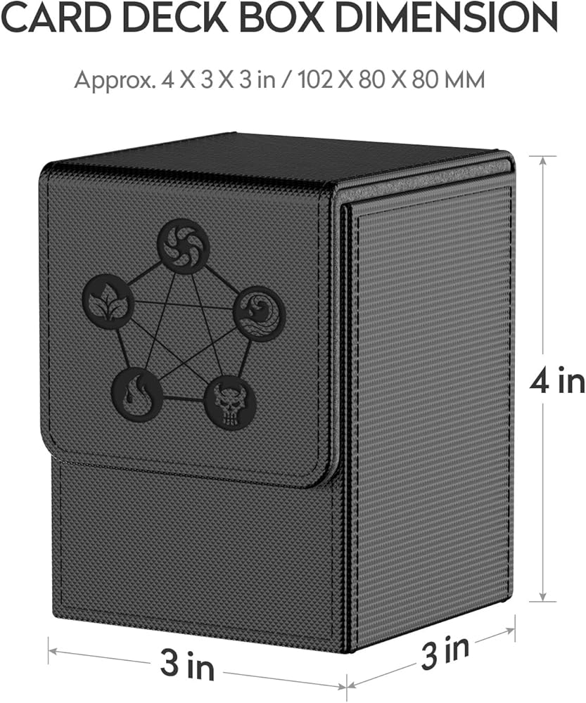 • Larger Storage -- Holds up to 110 Single Sleeved Cards / 80 Double-Sleeved Cards / 200 Cards without Sleeves, card deck box dimension: Approx. 3 x 3 x 4 in / 77 x 77 x 102 mm (NOTE: Not compatible with Top loaders)
