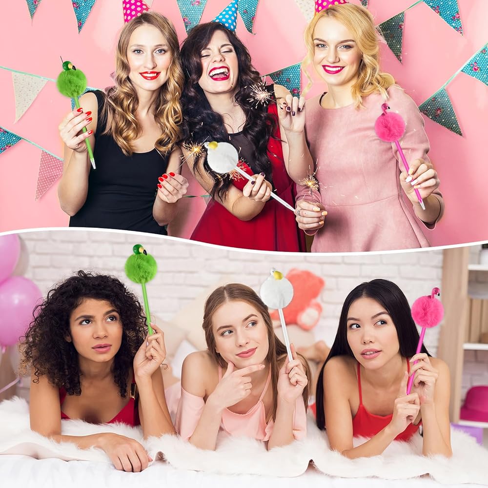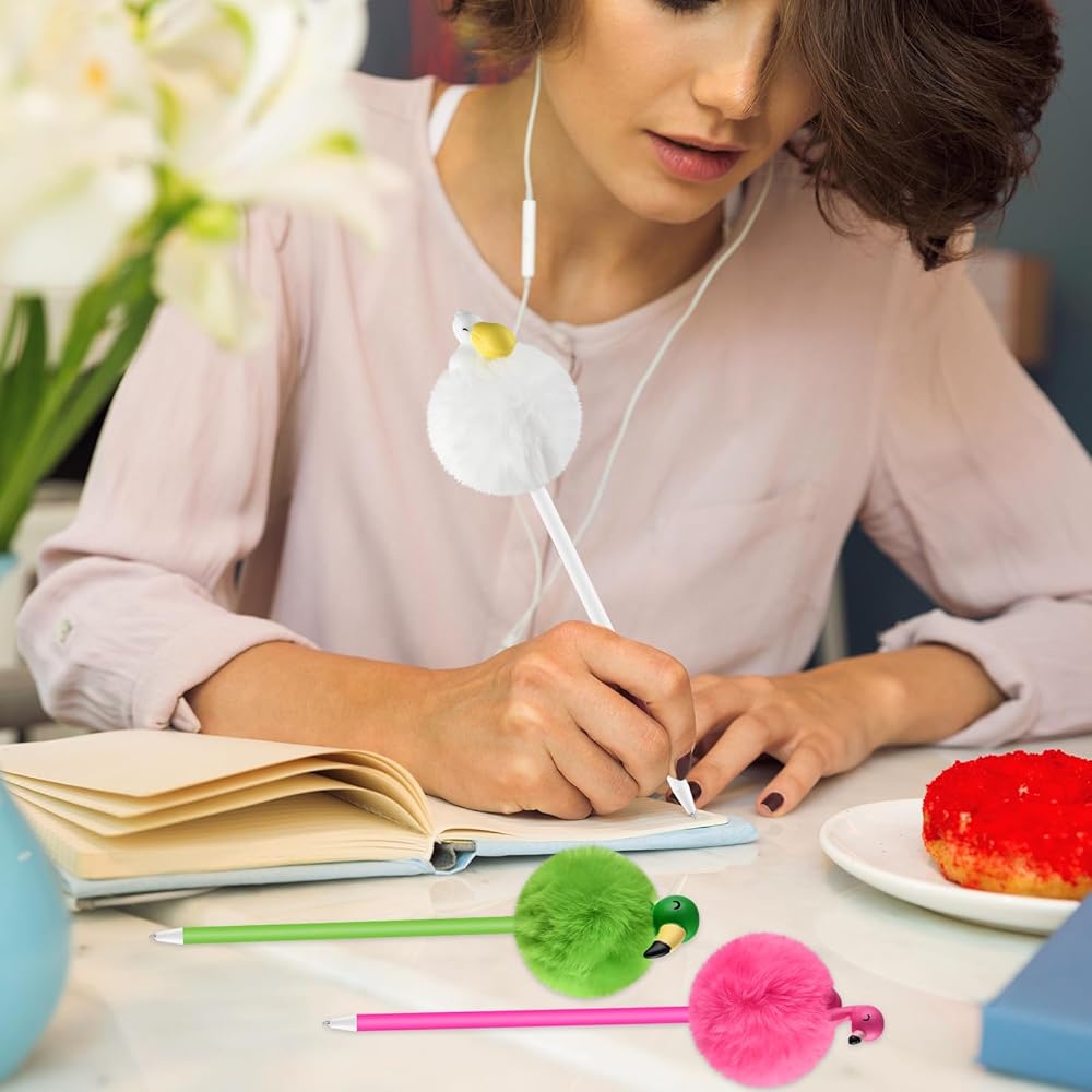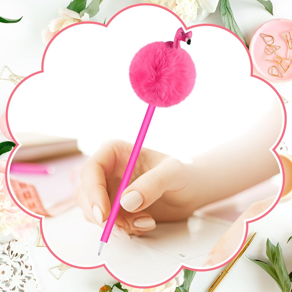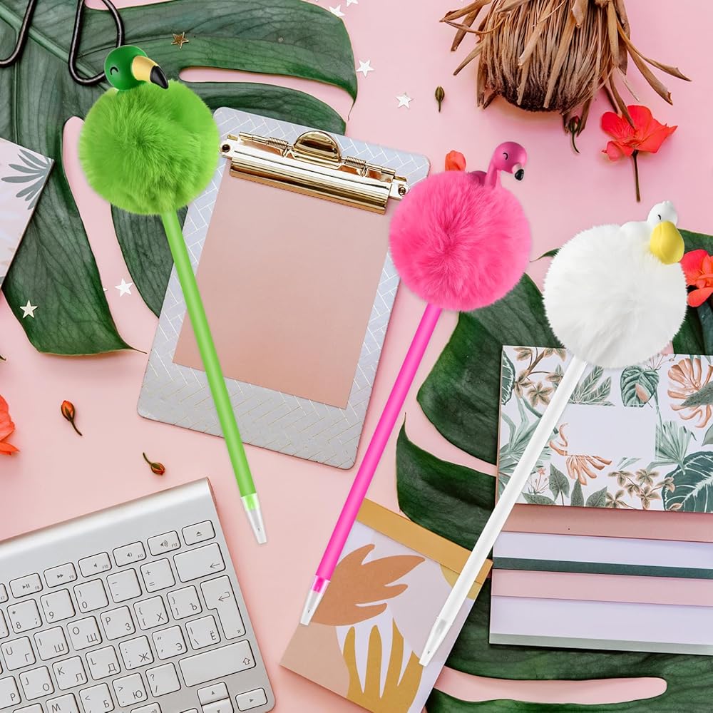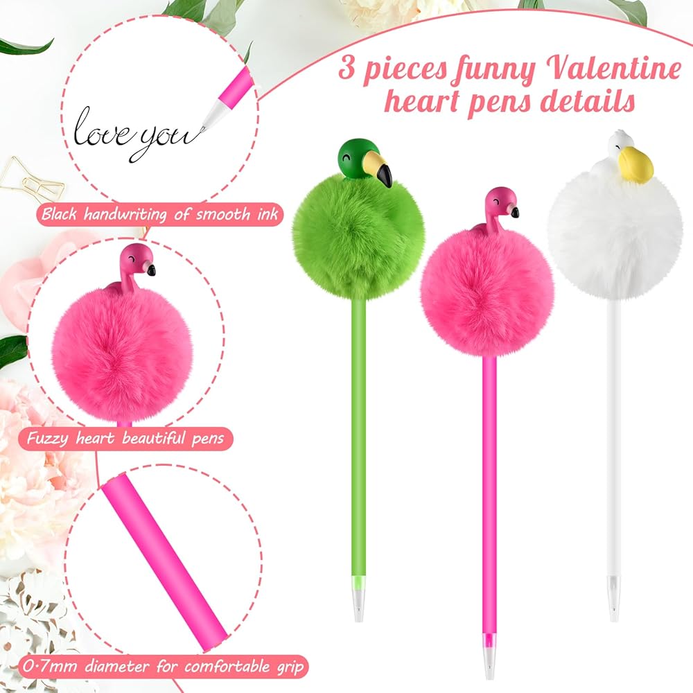 3 Pieces Colorful Fuzzy Flamingo Ballpoint Pens Funny Summer Party Pens Pom Pom Fluffy Rollerball Pens for Women Party Supplies Valentines Wedding Gift Favors (Flamingos)