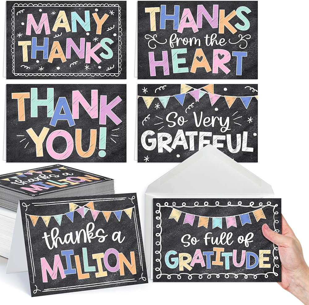 You'll receive 54 - 3.5x5 inch blank thank you cards—featuring 6 unique modern thank you cards designs. And the best part? This pack of simple thank you cards comes with envelopes, so they're ready to send right away! These unique thank you cards also feature large blank spaces, allowing you to create heartfelt personalized messages for your loved ones. Leave a lasting impression of gratitude by using as kids thank you cards, baby thank you cards, baby shower thank you cards girl, baby shower thank you cards boy, thank you cards kids teacher cards from student.