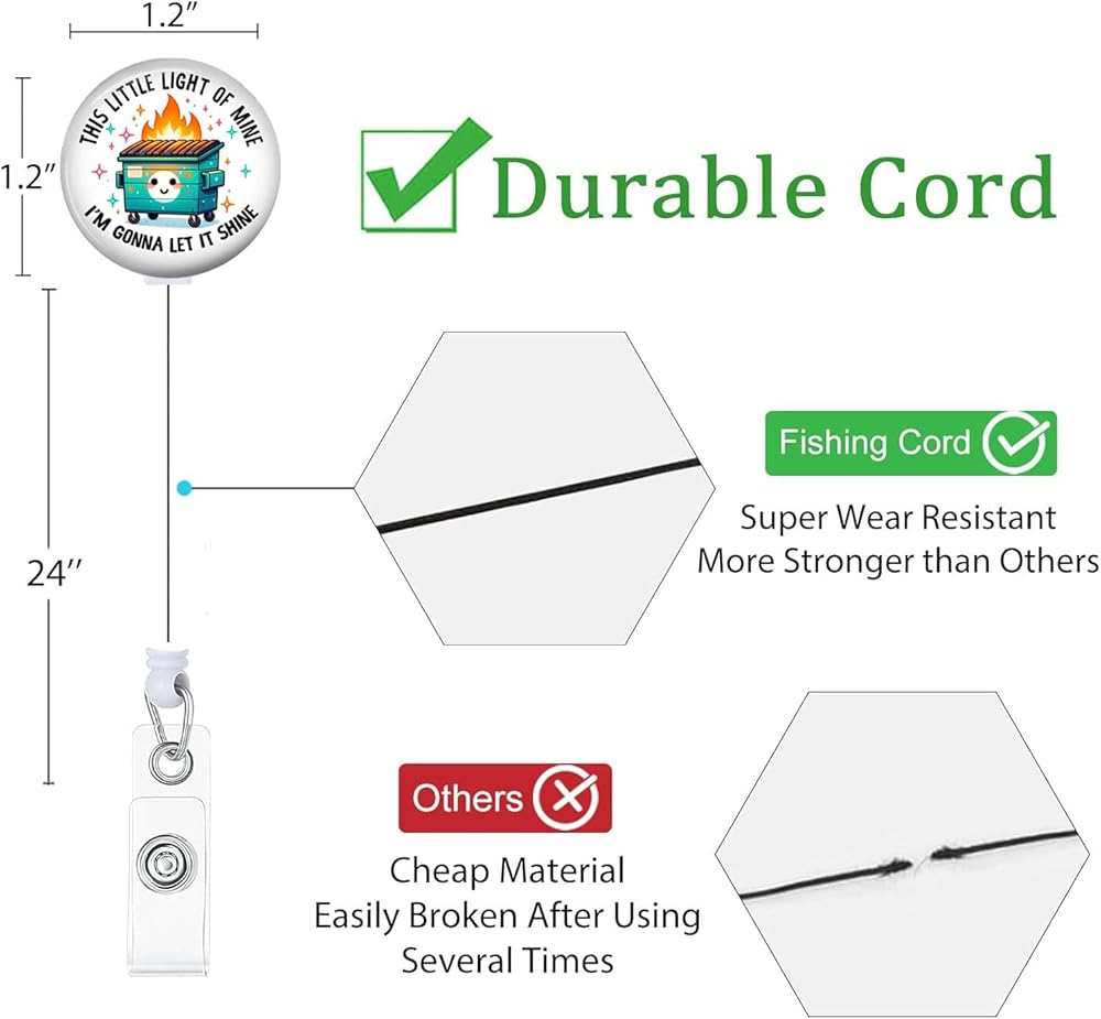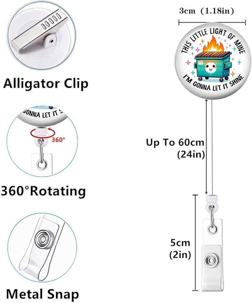Cute pattern and on-trend color make this badge reel even more perfect. "This little light of Mine, I'm Gonna Let it Shine", This is a very inspiring statement that will inspire you all the time. Retractable Length max: 24 inches (60cm),1.25 inches (3.2cm)in diameter.