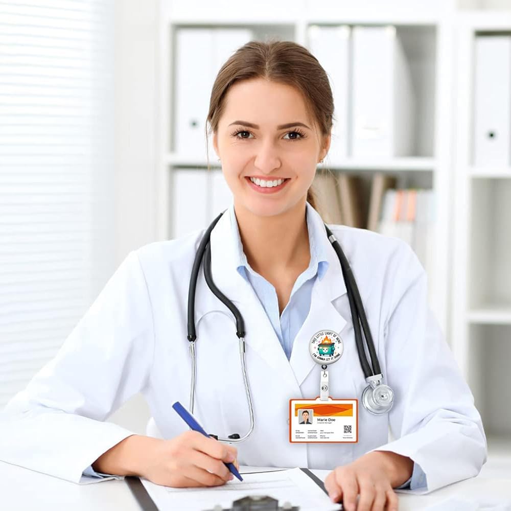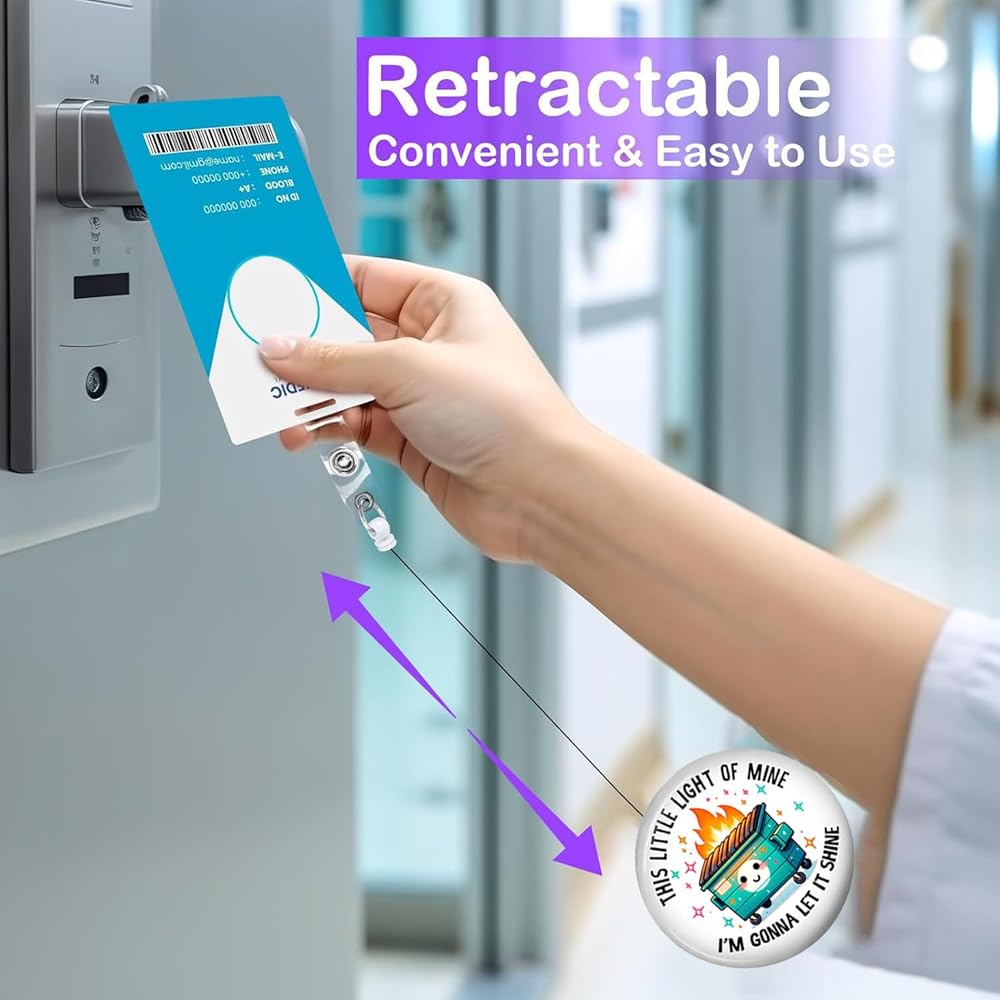 The easy-to-use teacher badge reel brings a lot of convenience to your lives. The nursing badge reel comes with 360° degree spinning alligator pinch clip on back. It allows you to easily attach your ID card holder, badge holder, or keys to your belt loop, bag, or pocket, so you always know where it is.