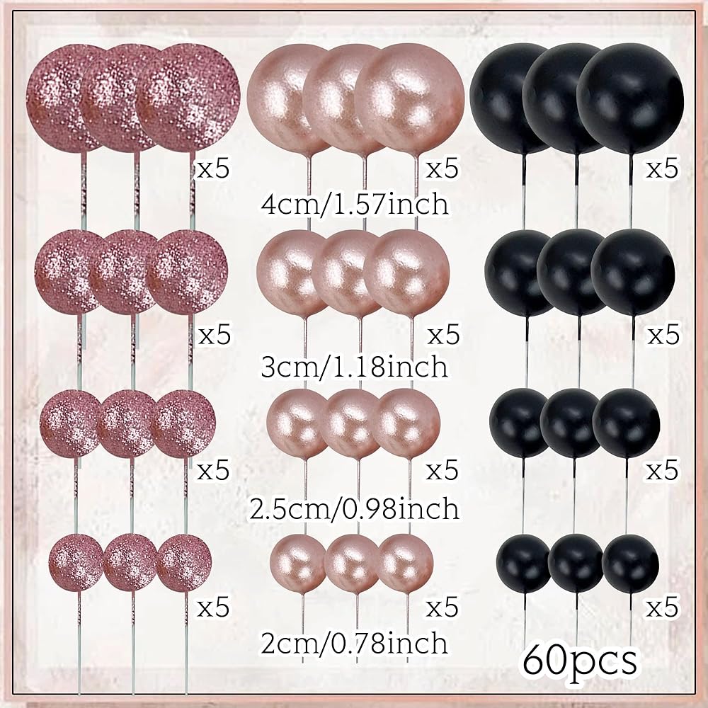 You Will Get: a total of 60 pieces, 20x Glitter Rose Gold, 20x Rose Gold, 20x Black, in the sizes shown in picture two,this set is enough for your birthday DIY needs, able to design the cake you have in mind.