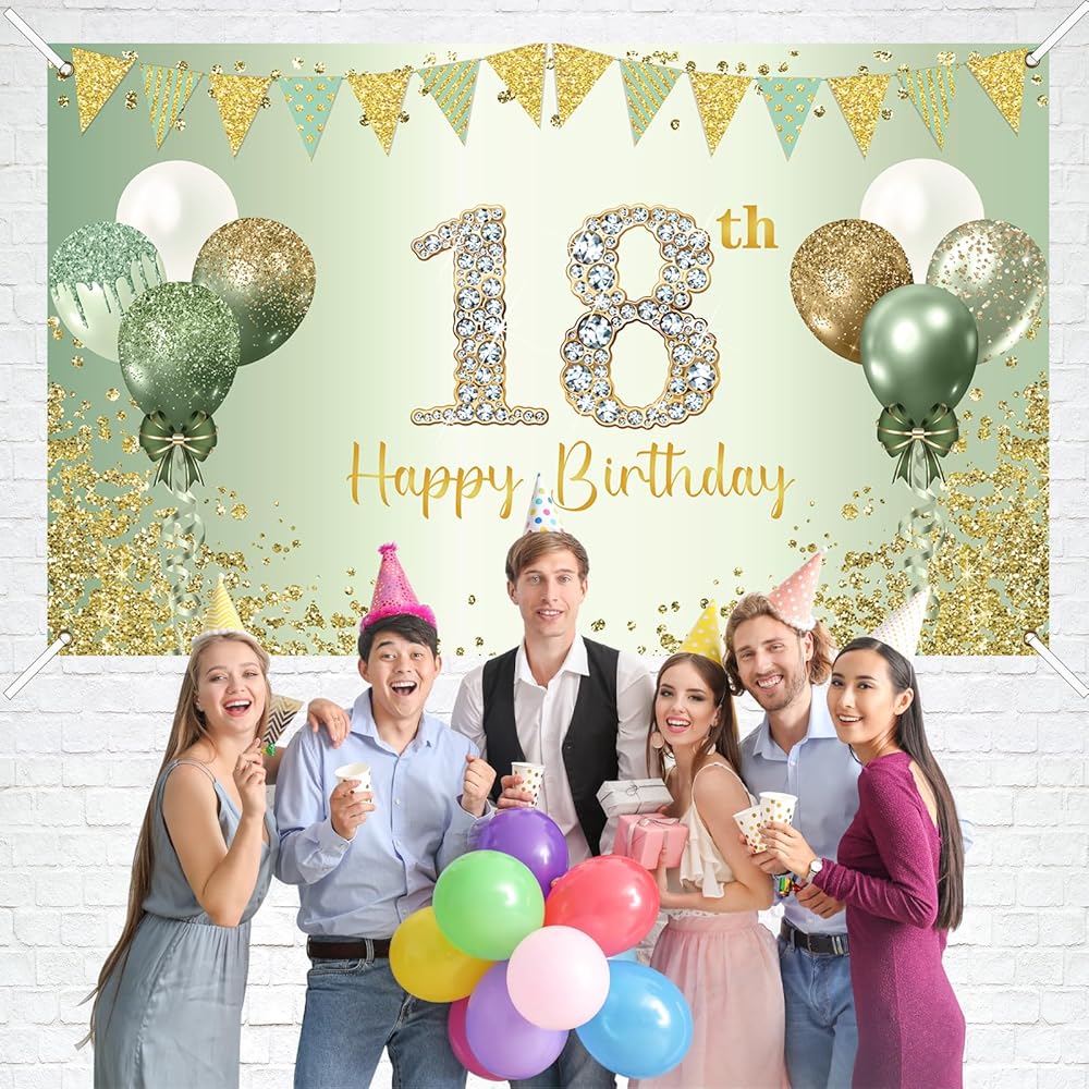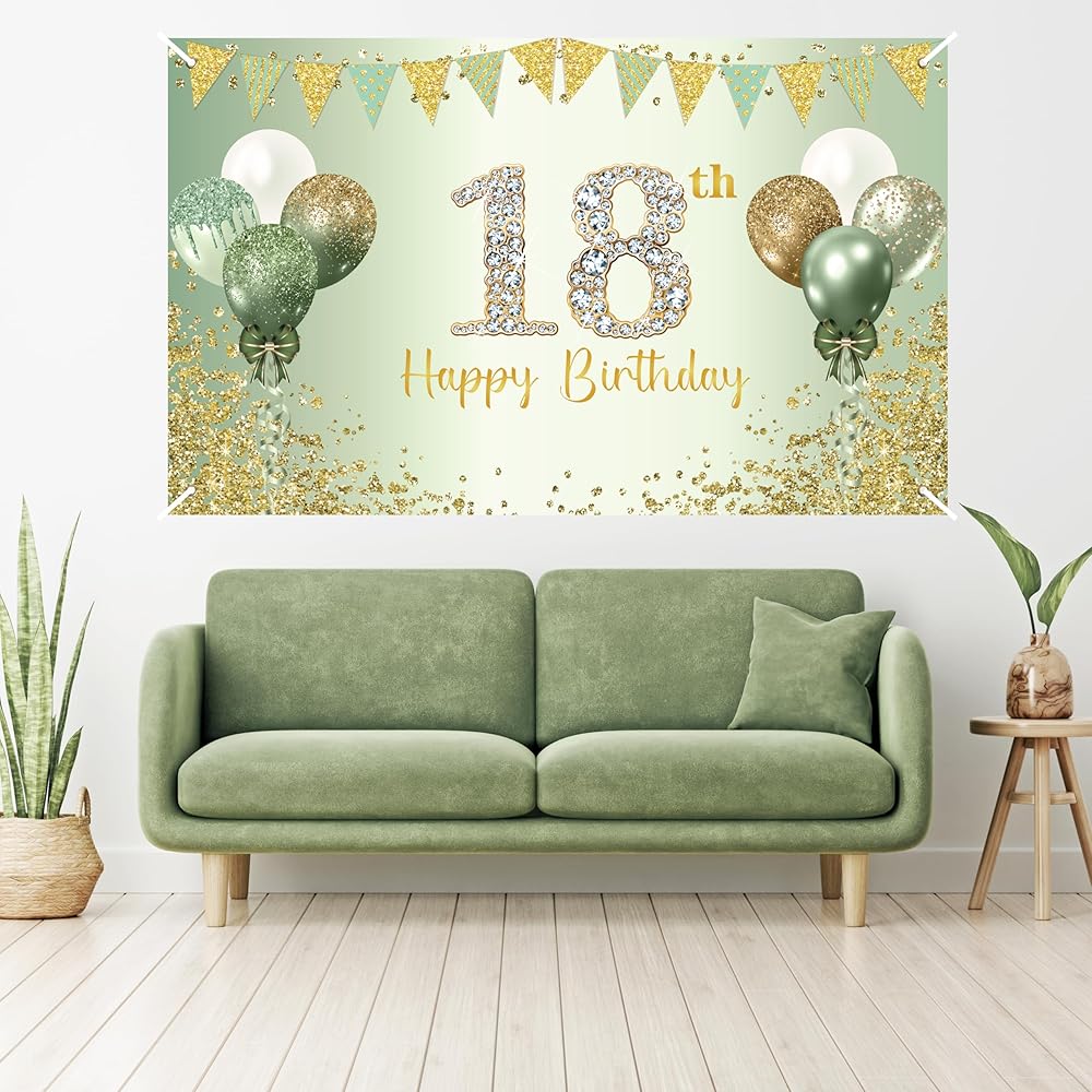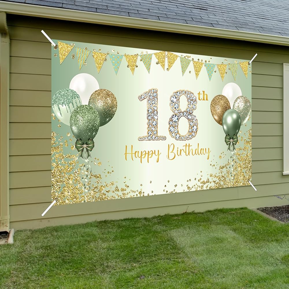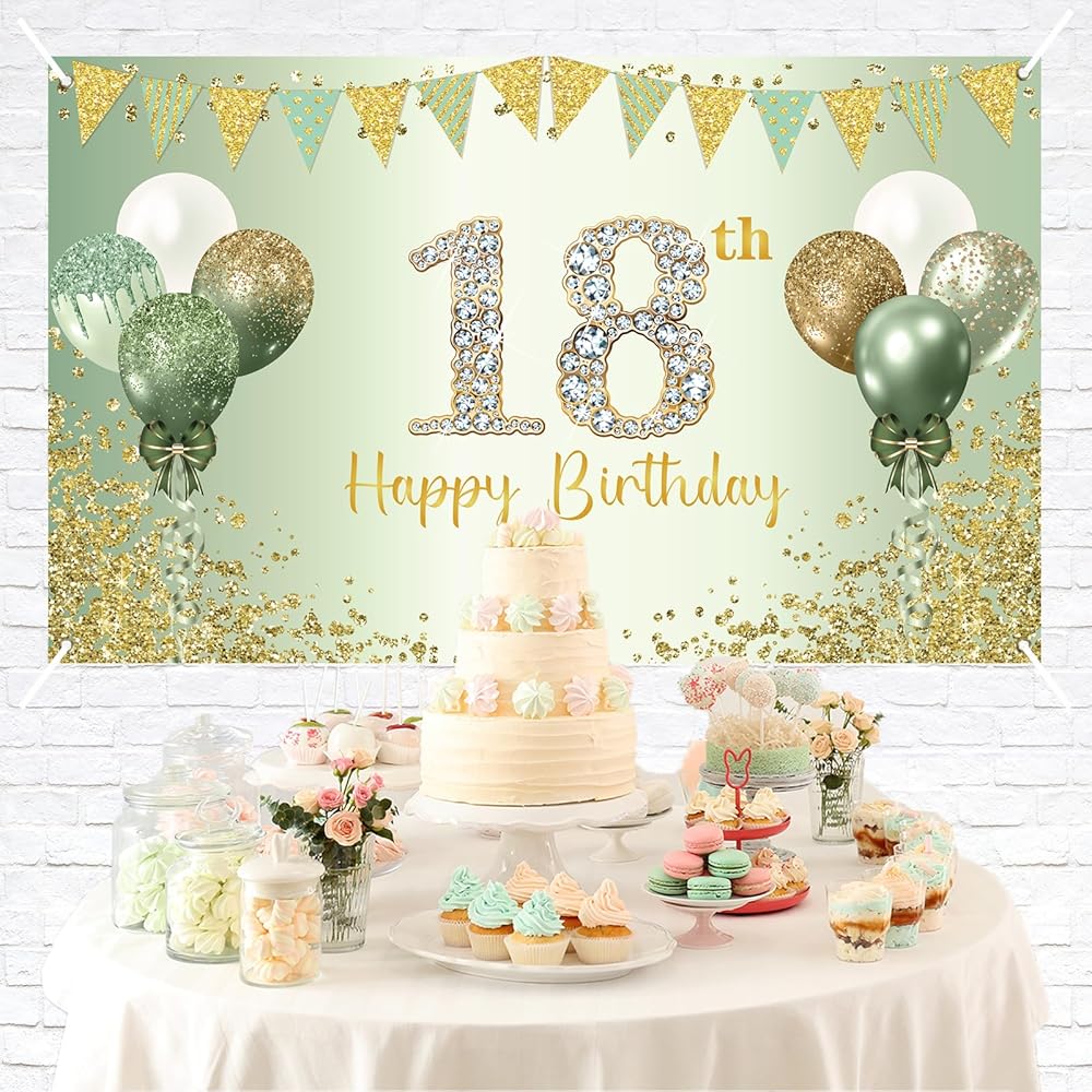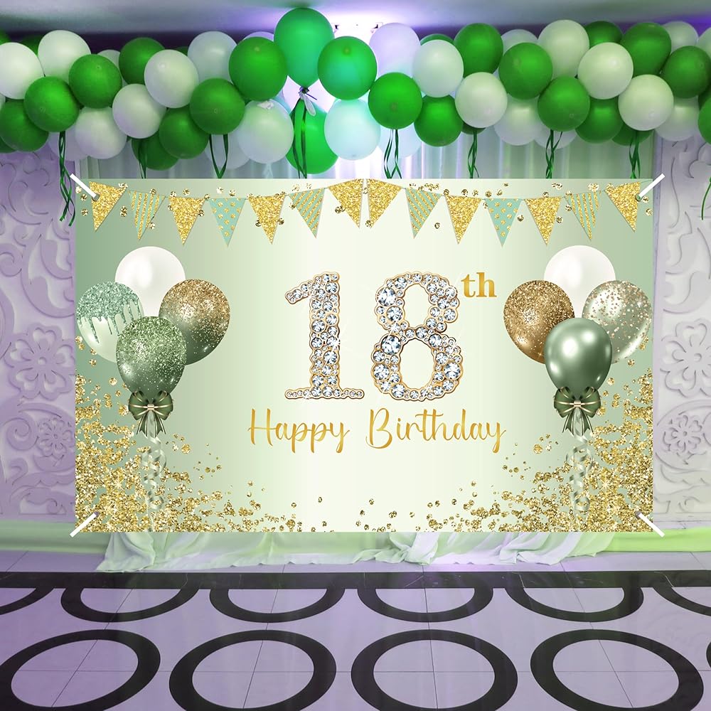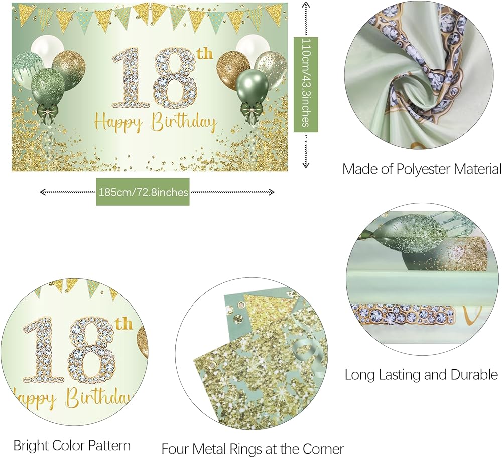 🍃Product Size: the green 18th birthday banner is 72.8 x 43.3 inches. It will adds more highlights of the 18th birthday party,perfect for your daughter's and son's birthday party.