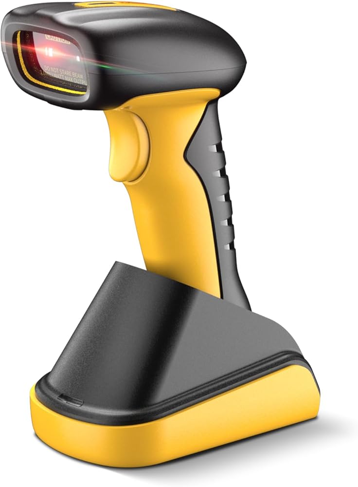 ➤〖Wireless Long Transmission Distance〗The barcode reader works with 2.4G wireless and Bluetooth transmission. The cradle has a built in 2.4G receiver that makes the scanner completely plug-n-play, or connect the scanner to your device via bluetooth, Support HID / SPP / BLE mode. The transmission distance can be up to 300m/984ft in barrier free environment using 2.4G USB dongle base, or up to 35m/115ft using Bluetooth. It makes this model an ideal choice for large warehouses.