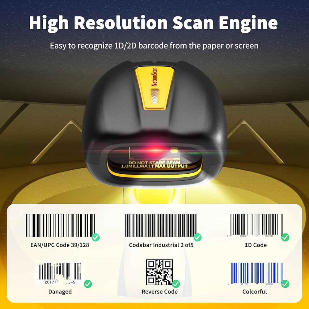 ➤〖High Resolution Scan Engine〗NetumScan bluetooth barcode scanner adopts the High Resolution Scan Engine. Superior recognition ability that can read many types of barcodes,such as 2D PDF 417, Micro PDF 417, Data Matrix, QR Code, Micro QR, Aztec, MaxiCode, Direct Part Mark and 1D UPCA / UPC E, EAN8 / EAN 13, Code 128, Code 39, Code 93, Code 32, Code 11, Composite Code -A, etc. It can be read quickly and accurately, even if the label may be partially damaged, dirty, or poorly printed.