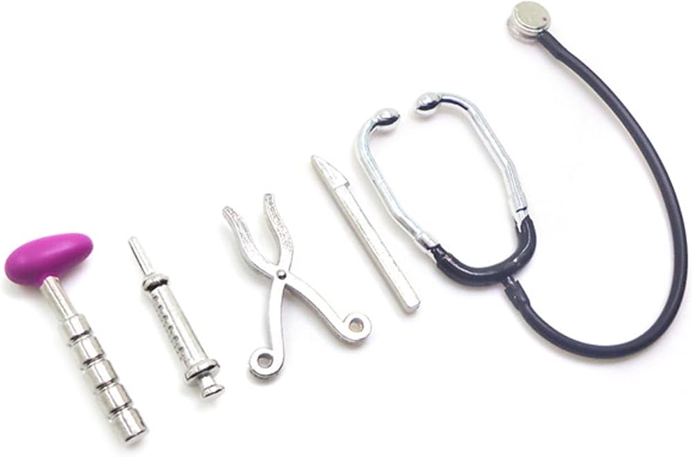 Dollhouse Mini Stethoscope set:Crafted from durable alloy materials, this mini doctor tool toy ensures a long-lasting and reliable performance. Its sturdy construction makes that you can enjoy its charm and functionality for an extended periodIt is not easy to deform, the surface is smooth without burrs, comfortable to touch.