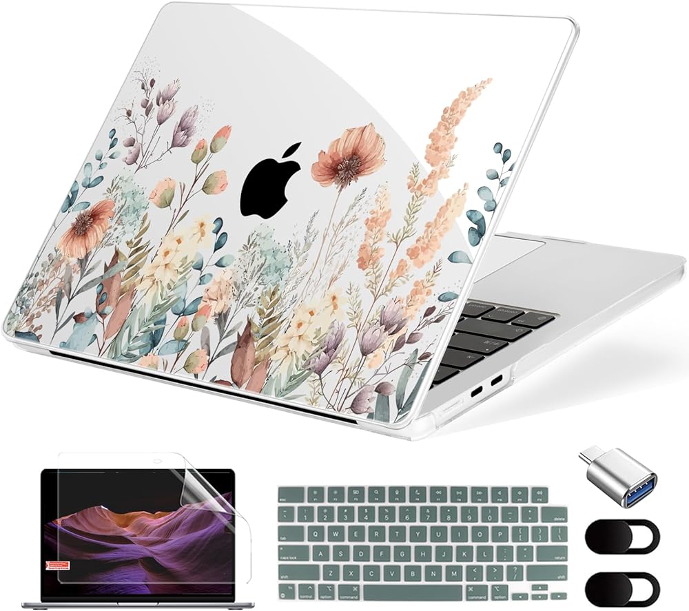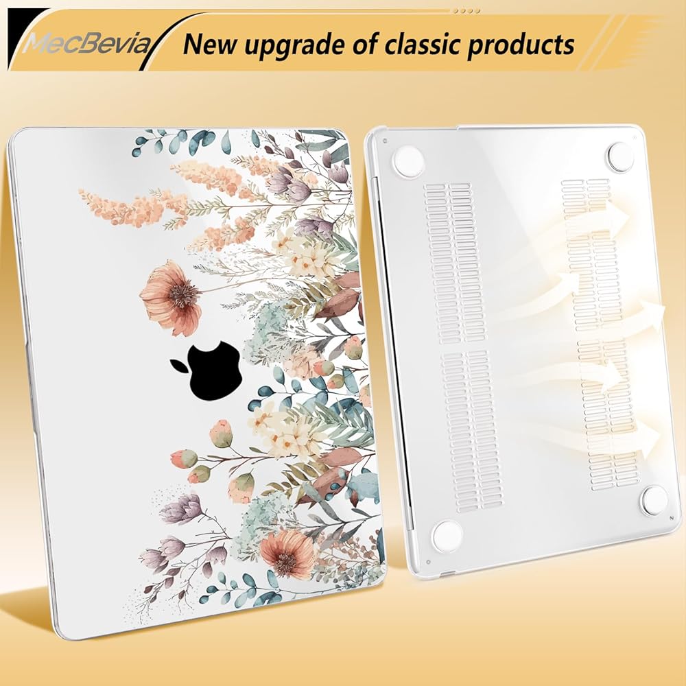 MecBevia Compatible with 2026 M5 MacBook Air 13 inch Case 2026 2025 2024-2022 M5 A3449 M4 A3240 M3 A3113 M2 A2681, Keyboard Cover, Screen Protector, Webcam Cover & Type-C OTG, Abstract Flower