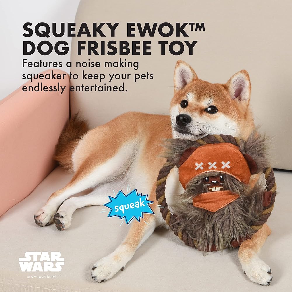 Watch Return of the Jedi with your pet and Ewok plush toys! This Ewok is ready to play with your Star Wars dog. Ewok plush toys for dogs are the perfect addition to any dog toy storage, be it a dog toy bin, dog toy box, or dog toy basket. This plush dog toy is made from soft fabric. It is a frisbee dog toy with a squeaker, making it a squeaky dog toy that will keep your pet entertained for hours on end. Ewok plush toys like this one can be dog chew toys. Give your pet this Ewok plush dog toy and see how delighted they are when they hear the squeaky dog toy sound this dog chew toy makes. A rope frisbee dog toy like this one is great for playing tug of war with your pet. Star Wars dog toys like this Star Wars dog toy are part of a larger Star Wars collection, making it perfect for pet parents who are part of the Star Wars fanbase. A Star Wars figure toy like this one can also be paired with Chewbacca toys, Yoda Toys, Darth Vader toys, and many other Star Wars figure Star Wars dog toys. Some Star Wars dog toy are stuffed animal toys while others are flattie dog toys that are stuffingless dog toys. Star Wars toys for pets come in multiple sizes, so there are toys for small dogs, toys for medium dogs, and toys for large dogs. Also be sure to keep the Force strong with you and your pet by checking out Star Wars clothing, Star Wars dog apparel & accessories, and Star Wars feeding & food storage. YOUR SATISFACTION IS OUR PRIORITY: For any questions or feedback, please reach out to us directly at [email protected]