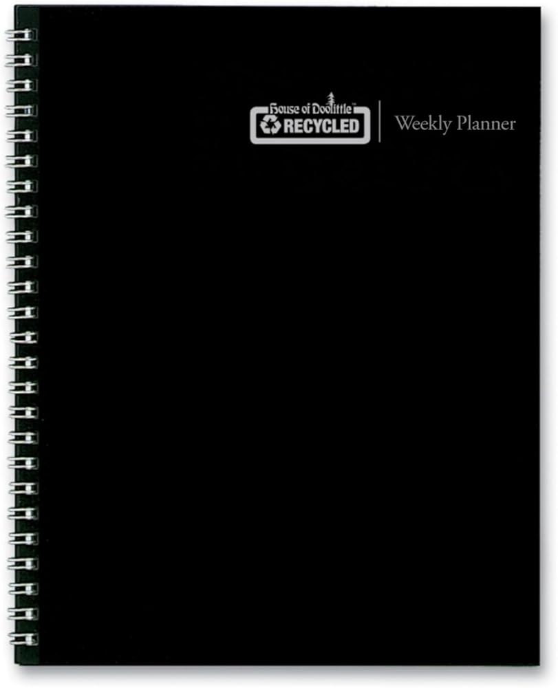 Since 1919, House of Doolittle has manufactured quality dated products made in the United States that help you be more productive during your daily planning activities. In 1989 we made the commitment to produce all of our products using recycled paper and materials. This House of Doolittle Weekly Planner Calendar is 12 months - January 2025 to December 2025 - with a blue embossed leatherette wirebound cover. The vertical weekly format contains quarter-hourly appointments. The week starts on Monday with one week per 2 page spread and a vertical format of one weekday per column. This personal planner is geared for a teacher, student, mom, dad or any professional who is looking to keep their life and tasks organized. Other products from House of Doolittle include desk pads, wall calendars, lesson planners, class record books, assignment books, monthly appointment planners and weekly appointment planners. Go Green with House of Doolittle products, as we use 100% recycled paper containing 100% post-consumer waste with soy inks, 50% recycled cover material, and 90% recycled wire. All of our products are manufactured in the USA. Since 1989 House of Doolittle has donated 5% of its profits to organizations that are working to create a more sustainable environment.