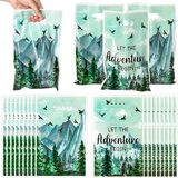 ANGOLIO 50Pcs Let the Adventure Begin Party Favor Bags, Adventure Tour Plastic Loot Gifts Bags, Camping Goody Candy Treat Packaging with Handles for Kids Camping Tour Themed Birthday Party Supplies