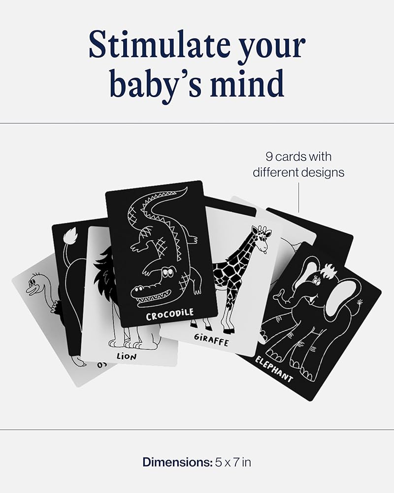EASY-TO-HANDLE DESIGN: Crafted with high-quality cardstock, these high-contrast cards for newborns are durable enough to withstand little hands. The 5" x 7" size is ideal for small hands, making it perfect for tummy time or crib-side activities.