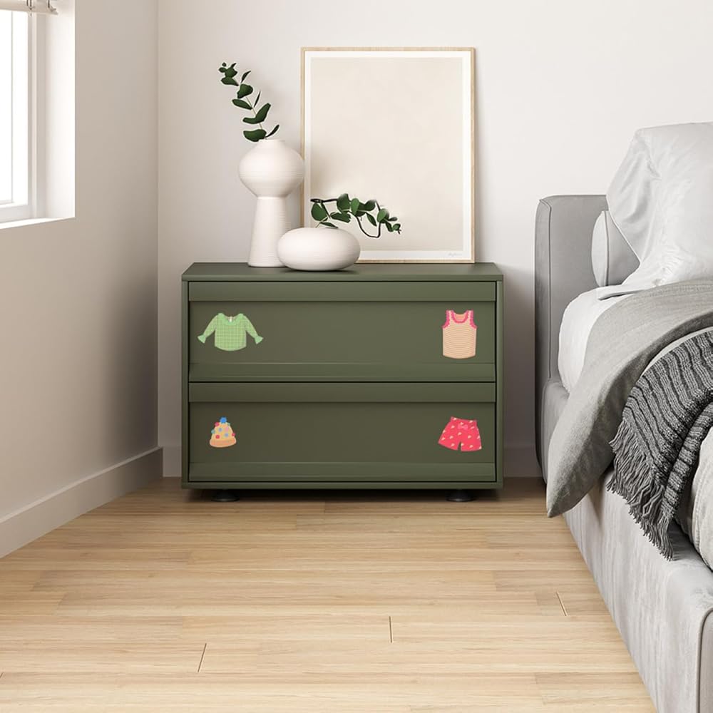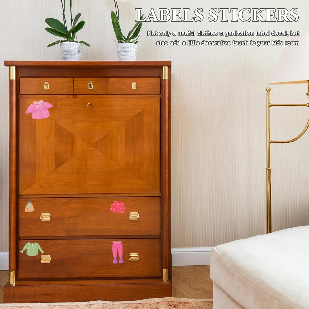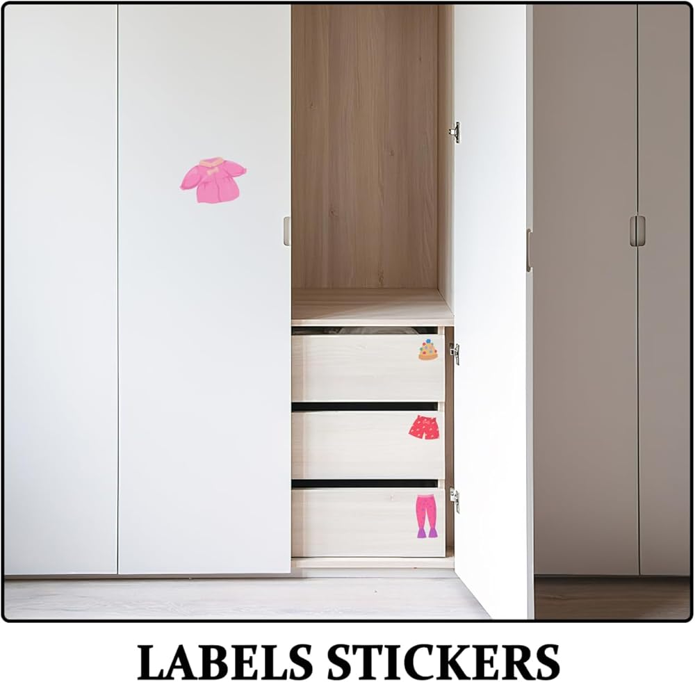 Dresser Clothing Stickers:Labels includes clothes pictures and text so little ones can put clothes in the correct bins even if they are not able to read