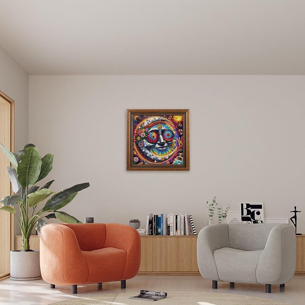 SEAWATCHER 5d Diamond Painting for Adults,Diamond Painting for Adults,Moon Indian Diamond Art,Design with Black Crystal & Sealant, DIY Craft Gift for Home Decor & Stress Relief 12x12in